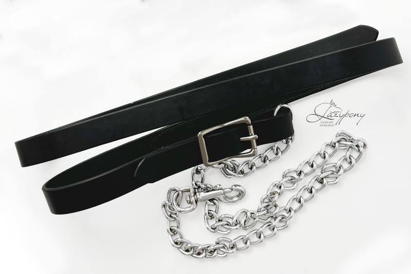 Ramal Lazypony clásico de cuero con cadena, leather lead rope with chain Lazypony