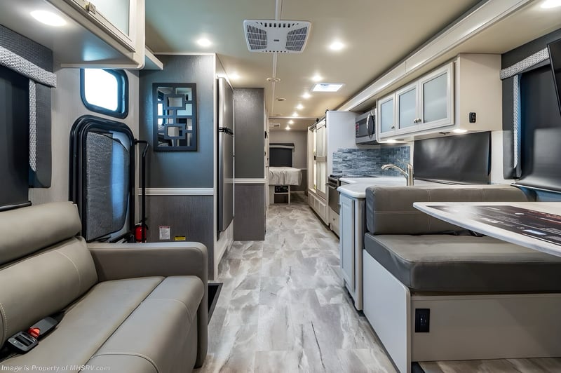 Caravan di lusso Fleetwood Discovery Flair 34 Classe A Con letto matrimoniale e un totale di 8 posti letto Cucina Bagno Letto king size Ampio slide-out Motore: motore Ford V8 da 7,3 litri Cambio automatico Lunghezza: 10,50 m Targa tedesca