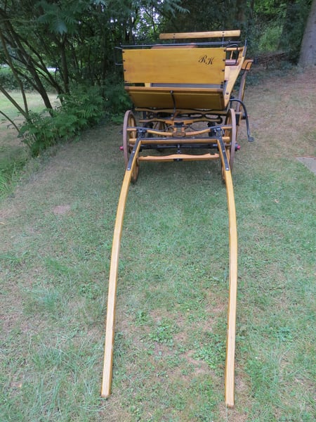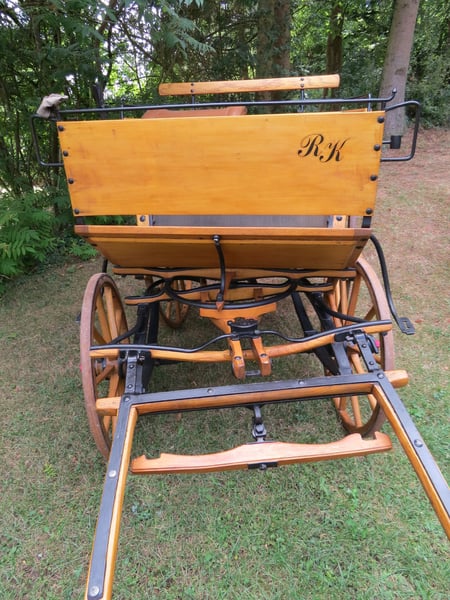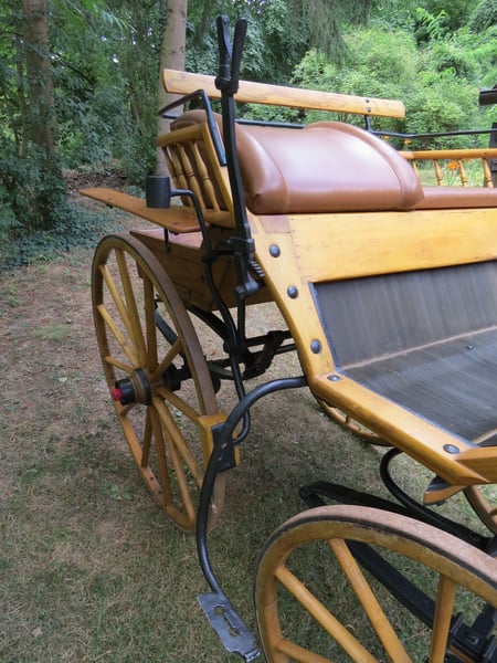 Ich biete einen vollrestaurierten Einspänner Doktorwagen (Sandschneider) im sehr guten Zustand an. Der Kutschwagen wurde von Hand geschliffen und mit Klarlack versiegelt. Der Schriftzug an der Front ist ein Aufkleber und ablösbar. Die Kutsche ist etwas verstaubt, aber unversehrt und wurde nur wenige Male gefahren. Material: Naturholz - Koprus: Buche, Eiche, Esche, - Räder: Buche; Felgen: Esche; Speichen/Gestück: Esche; - Deichsel/Lohnden: Esche; Beschläge: Schmiedeeisen (handgeschmiedet) Räder: Durchmesser vorne 81cm, hinten 110cm. Maße: - Länge total 220cm; - Breite: Kasten 95cm; Sitzkorb 120cm; Spur 108cm (am Boden); - Höhe: Boden 89cm; Spritzwand 139,5cm; Sitz: 125cm; Bock: 140cm; Einspänner Länge 200cm, Breite 70cm (mittel). Der Kutschwagen kann nach Absprache in Mühltal (bei Darmstadt) besichtigt werden. Bei Fragen bitte einfach melden.