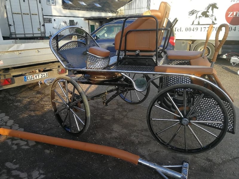 Hersteller Rombach Hat lange Zeit in der Garage gestanden. Edelstahl, Deichselbremse, Lenkverzögerung, Aufblasbare Luftfederung hinten. klappbarer Kutschbock um die Kutsche auch von hinten zu besteigen. Räder vorn und hinten 80 cm Durchmesser. Der Kutschbock ist auf einer Höhe von 105 cm montiert. Das Gewicht beträgt ca 350 KG (geschätzt) Bei Interesse fertige ich detalierte Bilder