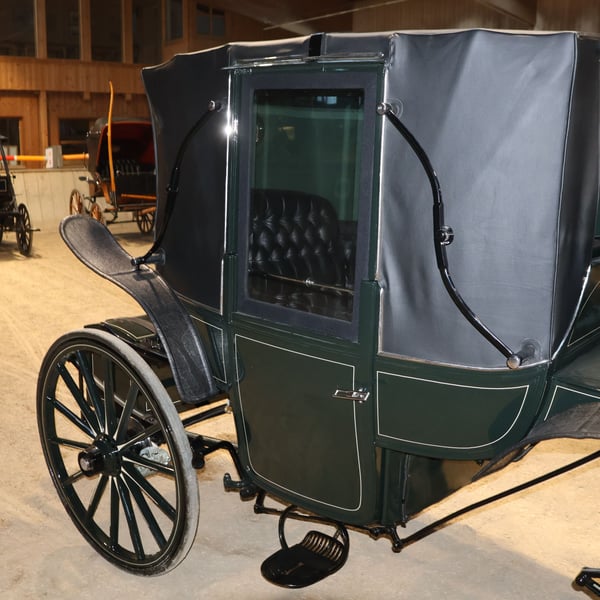 Carruaje Vis-à-Vis, completamente restaurado, para cuarteto de caballos, maletero de cuero