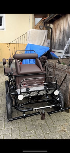 Es handelt sich um eine maßangefertigte Mini-Shetty-Kutsche von Glinkowski in schwarz-braun welche für Shettys und Minis geeignet ist. Die Kutsche wurde 2024 gebaut und seitdem nahezu nie verwendet, sie wurde überdacht gelagert und abgedeckt. Gewicht beträgt ca. 100 kg, Neupreis über 4.000,00€.