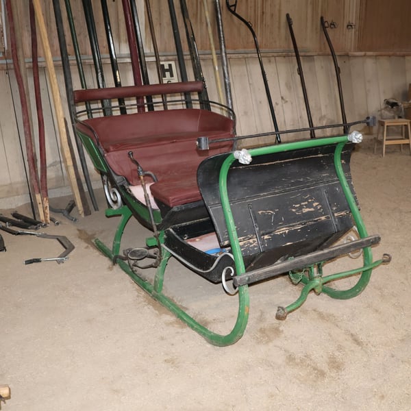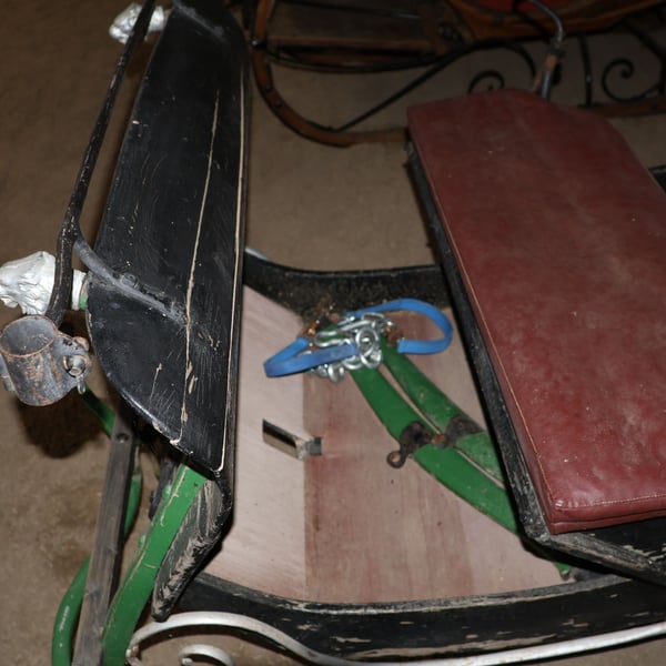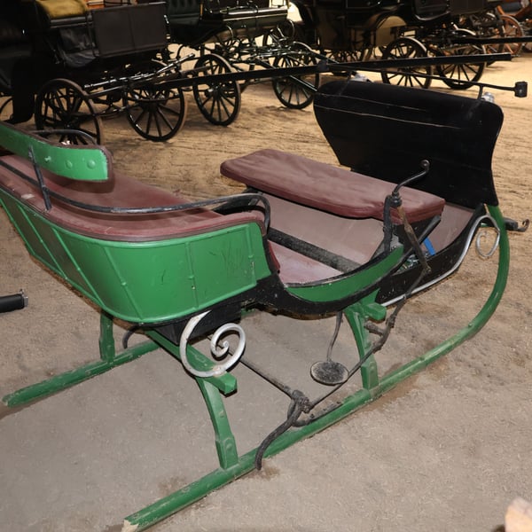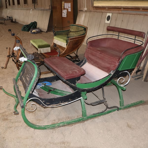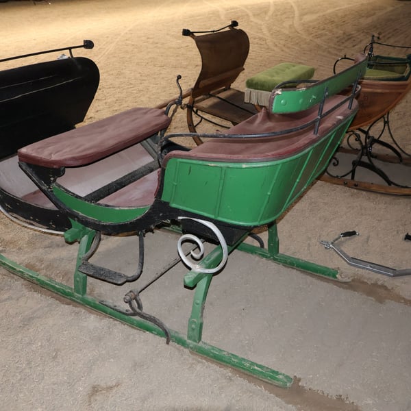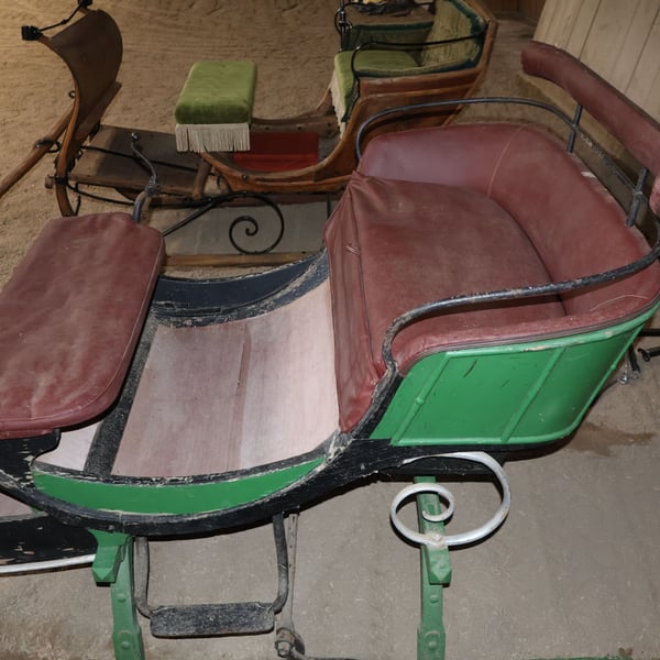 Trineo para caballos, carruaje, carroza antigua, decoración, pieza histórica