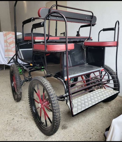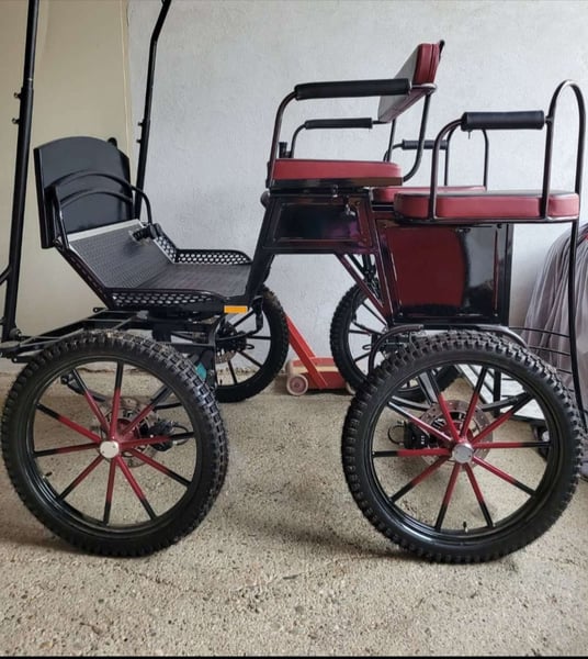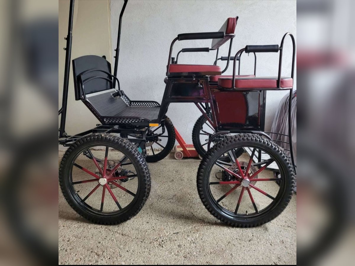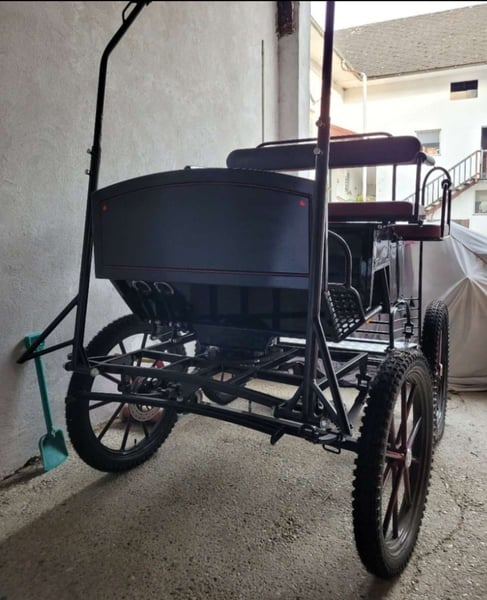 Verkaufe neuwertige Kutsche wegen Umstieg auf einen Gig. Sie wurde für einen Tinker mit einem Stockmass von 1,40m gekauft. Spurbreite 1,24m Bockhöhe 1,17m ohne Bocksitz Scheibenbremsen vorne und hinten und natürlich eine Feststellbremse. Räder 23 Zoll hintere Sitzbänke 50cm Preis verhandelbar Privatverkauf daher keine Gewährleistung keine Garantie und keine Rücknahme