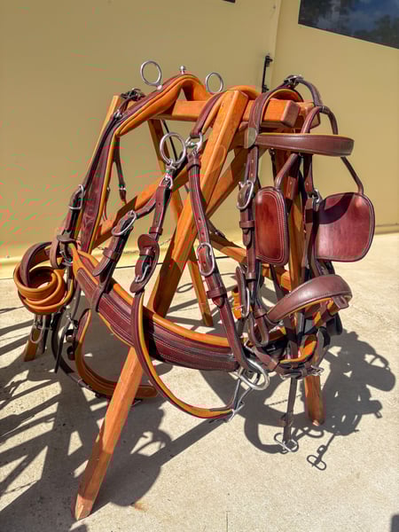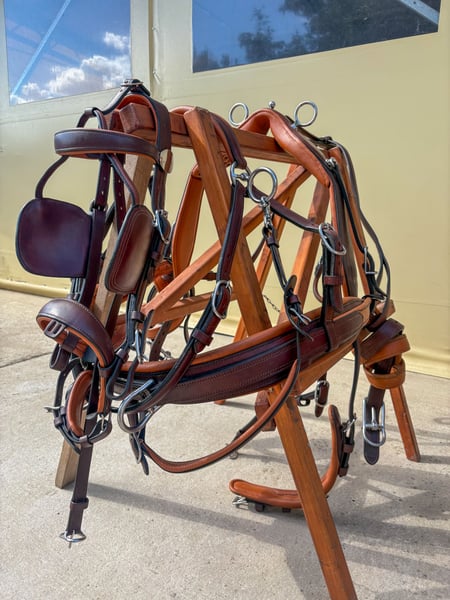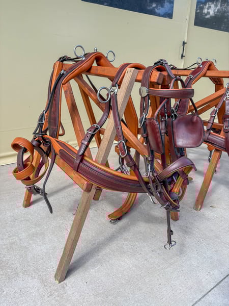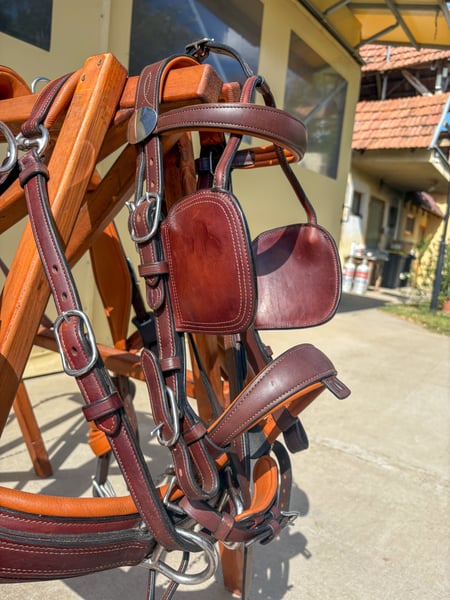 Neuwertiger zweispanner Marathongeschirr aus Leder. Ungarische Fertigung (Cserneczky Harness), exklusiver Premium Geschirr.