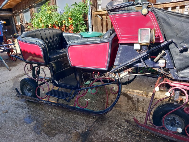 Hydraulic horse-drawn sleigh with a turntable. Can also be used as a carriage. German manufacturer. For sale due to discontinuation of operation.