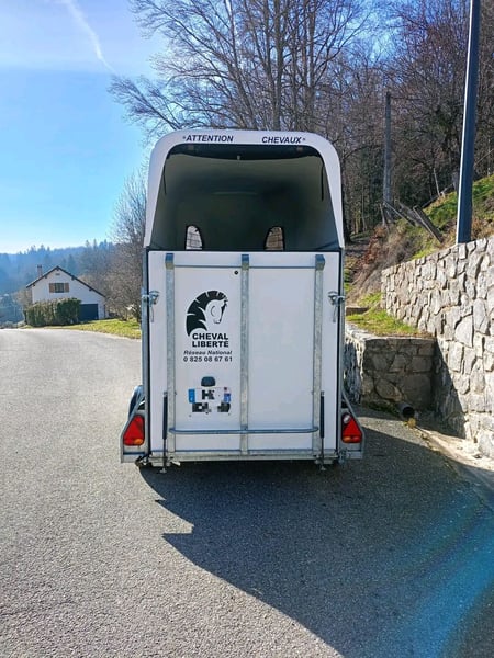 Plancher aluminim Suspension pullmann 2,2 Hublots latéraux ouvrants Pont porte arrière Rideau arrière automatique Matelassage, barres de poitrail et barre de croupe réglable en hauteur et en profondeur. Roue jockey automatique Ptac 1200kg Poid a vide 680kg Roue de secours avec support Très bon etat Prix à revoir légèrement
