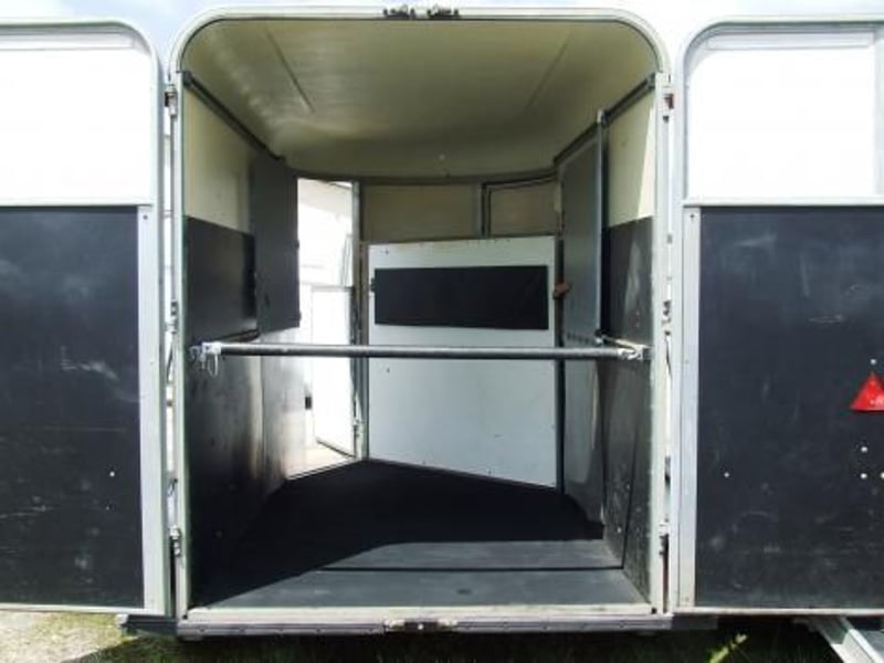 Capaciteit voor twee paarden. Diagonaal transport. Uitgang vooraan. Leeggewicht: 780 kg. GVW: 2400 kg Onafhankelijke wielophanging, polyethyleen vloer. Binnen- en buitenbevestiging, binnenverlichting, stuurwiel, reservewiel, antislipvloer, trekhaak met antidiefstalbeveiliging. Zomeropening. Banden vervangen