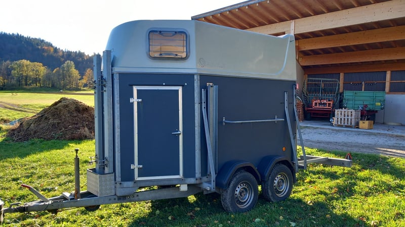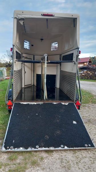 Pferdeanhänger mit Kutschenaufsatz hinten