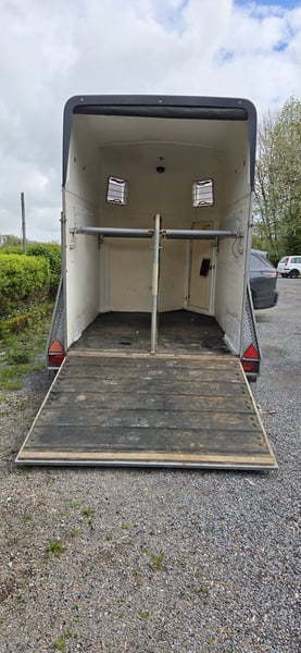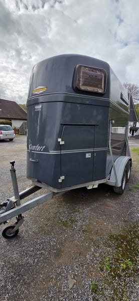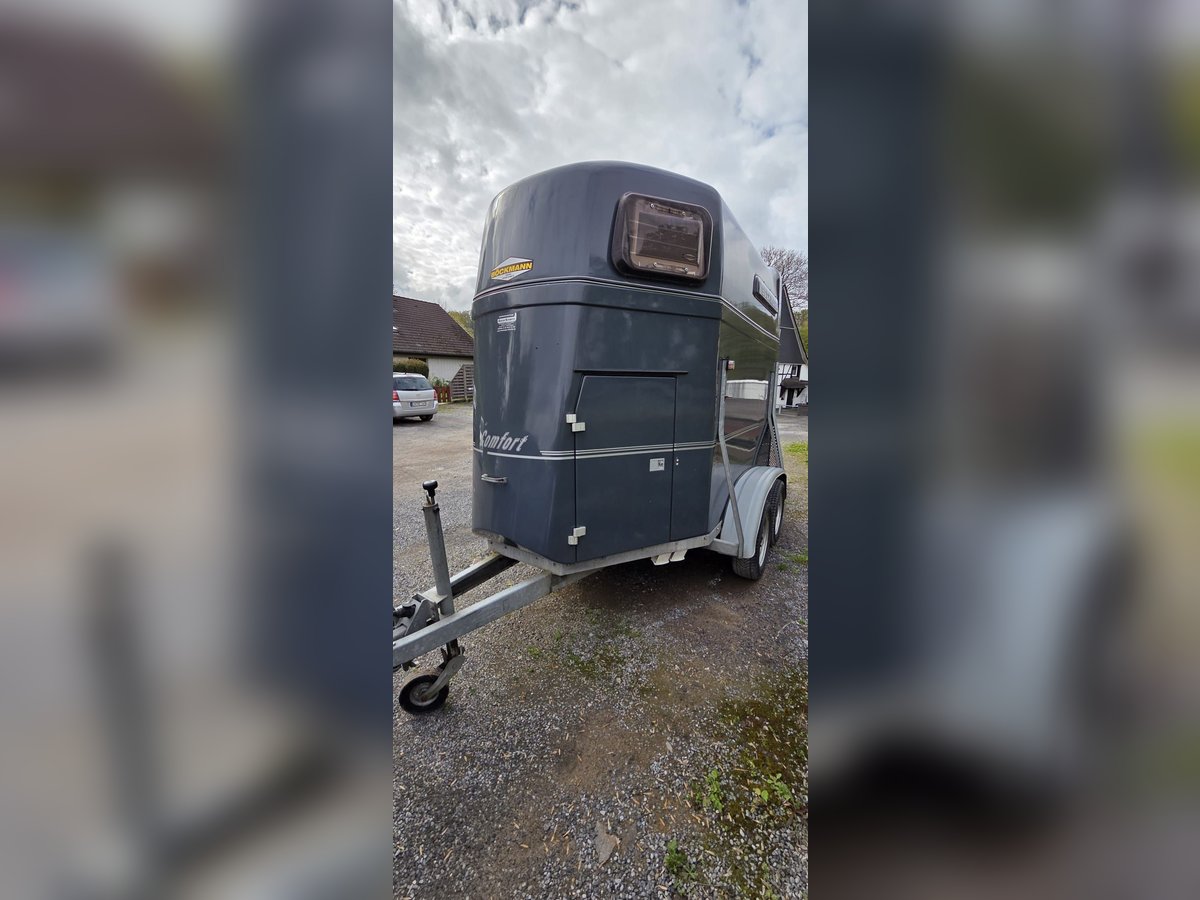 Böckmann Comfort 2er-Pferdeanhänger. Baujahr 2002. TÜV Neu! Die Innenwände wurden an 2 Stellen repariert und der Übergang zum Boden neu versiegelt. Wir geben ihn nur ab, weil wir einen größeren Hänger brauchten. Die Kupplung wurde vor 3 Jahren erneuert. Sie ist abschließbar. Der Hänger ist zugelassen, er kann also sofort mitgenommen werden. Bei Fragen, fragen.