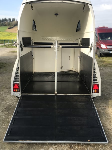 Böckmann Big Master • Erstzulassung: 07.2018 • Gesamtgewicht: 2.400kg • Aluminium-Boden • 2-Pferde-Ausführung mit sehr geräumigem Innenraum • Große Sattelkammer – ausreichend Platz für Sättel, Zubehör & Equipment • Zulassung: 100km/h Premium-Anhänger für sicheren und komfortablen Pferdetransport • Ideal für Training, Turniere oder Freizeit • Technisch einwandfrei