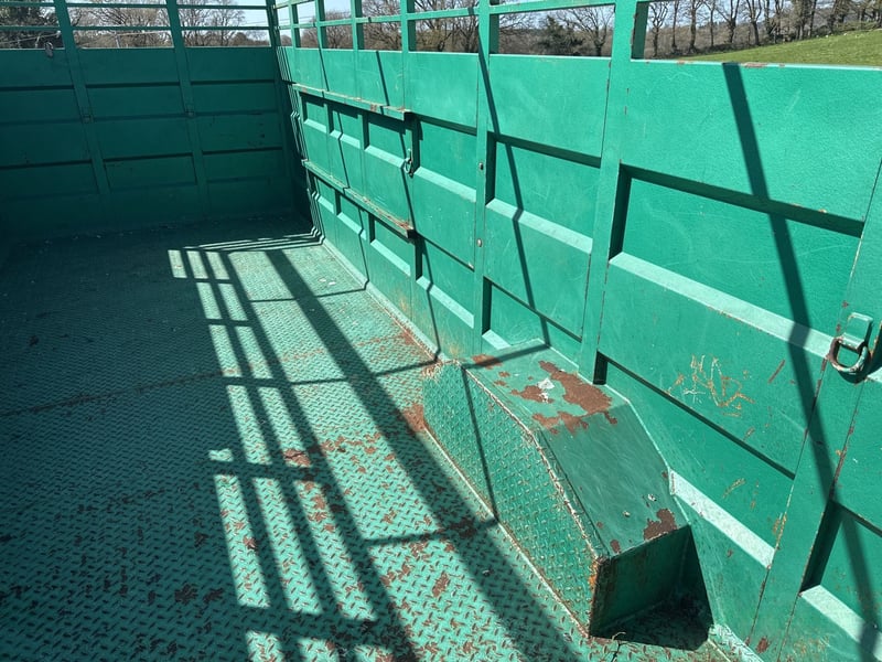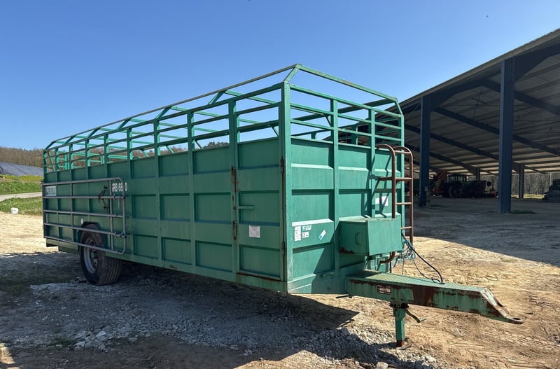 Type 1 Essieu -Année 2002 Freins hydrauliques, pneus 385/65R22.5, 2 portillons latéraux, Porte avant droite latérale, 1 portillon intérieur, pont manuel Nombre de bêtes: 10/11 - Tôle larmée peint Alu avec remontée -Fond et côté aluminium État Occasion - Vendue révisée Excellent état