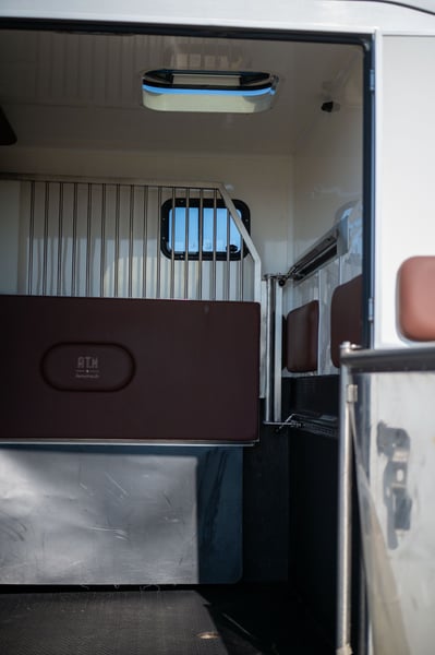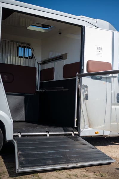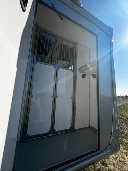 Deze Fiat Ducato 2.3 turbo is te koop van de 2de eigenaar. De luxueuze cabine biedt officieel plaats aan 5 personen en heeft een dubbele cabine met slaapplaats voor 3 personen. Er is een achteruitrijcamera aanwezig die tevens de laadruimte weergeeft. De laadruimte is voorzien van rustgevend blauw licht. De zadelkamer is apart voorzien van verlichting. De huidige kilometerstand bedraagt 196.000 km. Het betreft een hengstenuitvoering met zeer stevig tussenschot. Dit schot kan heel eenvoudig verschoven worden zo krijgt u één grote box voor jonge paarden of merries met veulen. Achteraan hebt u een ruime deur die toegang geeft tot een ruime zadelkamer met 2 zadelsteunen en enkele hoofdstelhouders. Via stevige deuren hebt u toegang tot elk paard afzonderlijk. Bij het laden van het tweede paard kan u deze ruimte afsluiten door een sterke buis met rubberen flap. Zo is het niet noodzakelijk altijd de ramp te sluiten. Deze wagen is uitgerust met trekhaak voor aanhangwagen tot 3 ton.