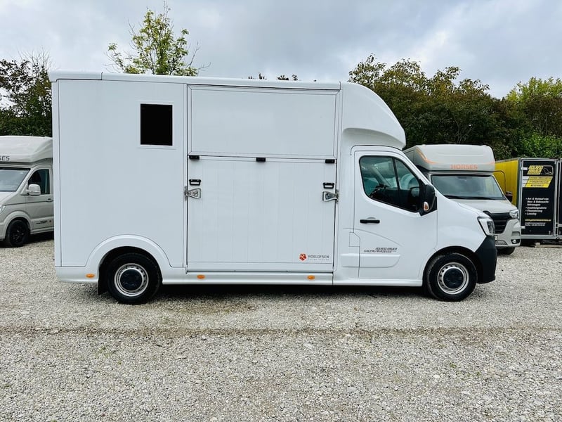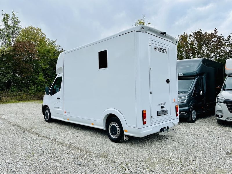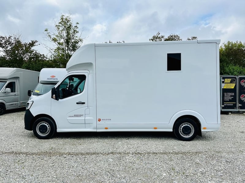 IMMEDIATELY AVAILABLE!! Roelofsen Yorse – Your Reliable 2-Horse Transporter Based on Renault Master Base price of the vehicle in white, including German TÜV inspection and delivery, €63,835 net (plus 19% VAT) The Roelofsen Yorse impresses with its simplicity and quality. Equipped with a powerful 165 HP diesel engine (Euro 6E) and a manual gearbox, it offers a comfortable driving experience. The permissible gross weight of 3.5 tons allows for toll-free use in many countries. State-of-the-art assistance and safety systems ensure a secure driving feeling—whether on short trips or long tournament journeys. Thoughtfully designed horse compartment – safe & comfortable • Space for up to two horses • Non-slip rubber flooring for maximum safety • Kick protection on the walls to safeguard the horses • Side ramp with hatch and limiter • Horse monitoring system with integrated reversing camera • Spacious tack room – perfectly organized • Shelving system with practical boxes • Bridle and saddle holders for optimal order • Ample space for additional equipment The entire body is made of durable GRP panels, ensuring high durability while keeping the weight low. This guarantees a stable, easy-to-manoeuvre vehicle with excellent driving characteristics. Optional equipment (not included in the base price): • Front bumper guard for side ramp • Rotatable partition at the partition wall • Doors between horse area and tack room • Removable feed troughs on the wall • Camera surveillance in the horse compartment including reversing camera • Articulated partition instead of standard partition • Removable breast bar with holder and panic release • Mounting mirror and step assist on the rear door • Tow bar including 13-pin electrical set and stainless steel rear step • "Horses" lettering on front and rear Total price of the vehicle including optional equipment: €69,540 net (plus 19% VAT) Leasing or financing from €899 net/month without deposit Further information & pictures available upon request! Subject to errors and prior sale.