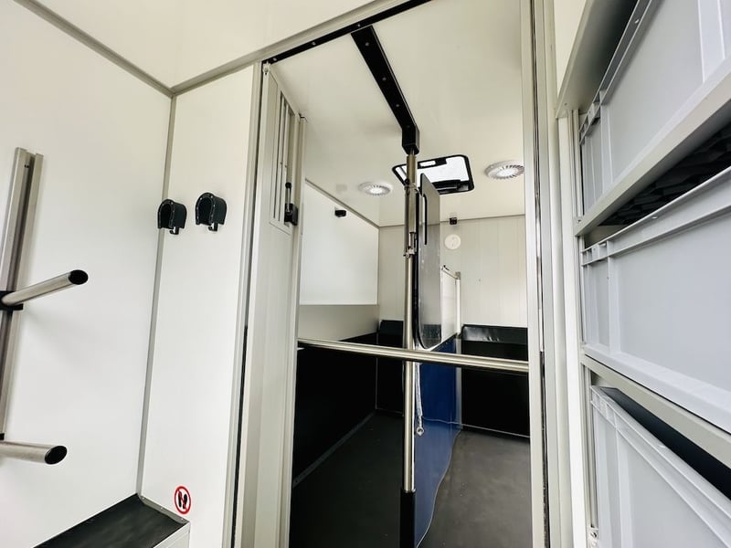 Direct beschikbaar!! Roelofsen Yorse – uw betrouwbare 2-paarden transporter op basis van een Renault Master Basisprijs van het voertuig in wit, inclusief Duitse keuring en overschrijving: €63.835,- netto (excl. 19% btw) De Roelofsen Yorse overtuigt door eenvoud en kwaliteit. Met zijn krachtige 165 pk dieselmotor (Euro 6E) en handgeschakelde transmissie biedt hij een ontspannen rijervaring. Het toegestane totaalgewicht van 3,5 ton maakt belastingvrije gebruik in veel landen mogelijk. Geavanceerde assistentie- en veiligheidssystemen zorgen voor een veilig rijgevoel, of het nu gaat om korte ritten of lange toernooireizen. Doordachte paardenruimte – veilig & comfortabel • Ruimte voor tot 2 paarden • Antislip rubberen bodem voor maximale veiligheid • Kickbescherming aan de wanden ter bescherming van de paarden • Zij-ingang met klep en begrenzer • Paardenbewakingssysteem met geïntegreerde achteruitrijcamera • Ruime zadelkamer – perfect georganiseerd • Legbordensysteem met praktische kisten • Halters en zadelhouders voor optimale orde • Veel ruimte voor extra uitrusting De gehele opbouw bestaat uit stevige GFK-panelen, die zorgen voor een hoge waardebestendigheid en tegelijkertijd het eigen gewicht laag houden. Dit garandeert een stabiel, wendbaar voertuig met uitstekende rij-eigenschappen. Optionele extra’s (niet inbegrepen in de basisprijs): • Afsluitplank voor zij-ingang • Draaiend kopstuk aan de scheidingswand • Deuren tussen paardenruimte en zadelkamer • Verwijderbare voederbakken aan de wand • Camera bewaking in de paardenruimte inclusief achteruitrijcamera • Knikscheidingswand in plaats van standaard scheidingswand • Verwijderbare borststang met houder en paniekontgrendeling • Spiegels en opstapje aan achterdeur • Trekhaak inclusief 13-polige elektrische set en roestvrijstalen achterstap • Bedrukking “Horses” voor- en achteraan Totale prijs van het voertuig inclusief extra’s: €69.540,- netto (excl. 19% btw) Leasing of financiering vanaf €899,- netto/maand zonder aanbetaling Meer informatie en foto’s op aanvraag! Onder voorbehoud van vergissingen en tussentijdse verkoop.