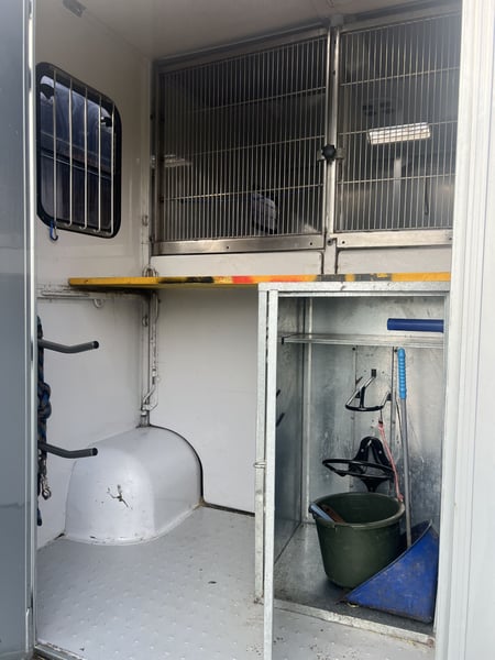 For sale: Renault Master Compact 2-Horse Trailer Year of manufacture 2009, only 94,800 miles! New TÜV, new tires, very well maintained condition. ☀️Top Features:☀️ ➡️ Versatile for large and small horses:➡️ Aluminum construction and floor, usable without partition bars ➡️ Comfortable:➡️ Walk-in tack room, air conditioning, sliding window, roof window, cruise control ➡️ Safe:➡️ Interior and rearview camera, side, rear, and front tread protection ➡️ Spacious:➡️ 5 seats, sleeping cabin, maximum gross weight 3,500 kg, trailer hitch 2,250 kg ➡️ Practical:➡️ LED interior lighting, side padding, sliding partition wall Please contact us for further questions. Price plus 20% VAT. Perfect for your transportation needs – act now! Registered in Austria