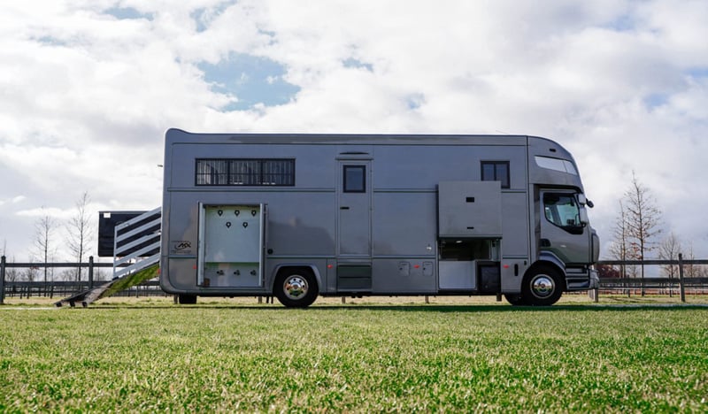 FR: Ce véhicule est très bien équipé. Autour du véhicule, de nombreux compartiments sont disponibles pour le stockage des matériaux. À l'intérieur, il y a une cuisine et un salon très pratiques, qui sont magnifiquement finis en bois. Equipement très confortable comprenant un réservoir de 450 litres d'eau douce et 300 litres d'eau usée, climatisation LG, surveillance par caméra en direct de l'espace chevaux, contrôle de la température de l'espace chevaux, salle de bain pratique avec toilettes et douche, cuisine avec réfrigérateur, congélateur, micro-ondes, possibilité de regarder la télévision, GPS, transmission automatique, suspension pneumatique et bien plus encore... Leasing disponible, contactez-nous pour plus d'informations!! NARROW: Marque : AKX Poids: 16T Chevaux: 4 Année: 2021 This vehicle is very well equipped. Around the vehicle there are many compartments for storing materials. Inside, there is a very practical kitchen and living room, which are beautifully finished in wood. Very comfortable equipment including a 450 litre fresh water tank and 300 litre waste water tank, LG air-conditioning, live camera surveillance of the horse area, temperature control of the horse area, practical bathroom with toilet and shower, kitchen with fridge, freezer, microwave, TV watching facilities, GPS, automatic transmission, air suspension and much more... Leasing available, contact us for more information! Brand: AKX Weight: 16T Horses: 4 Year: 2021 NL: This vehicle is very well equipped. Around the vehicle, there are many compartments available for the storage of materials. Inside there is a very practical kitchen and living room, which are beautifully finished with wood. Very comfortable equipment including a 450 litre fresh water tank and 300 litre holding tank, LG air conditioning, live camera surveillance of the horse area, temperature control of the horse area, practical bathroom with toilet and shower, kitchen with fridge, freezer, microwave, TV viewing facilities, GPS, automatic gearbox, air suspension and much more... Leasing possible, contact us for more information! Brand: AKX Weight: 16T Horses: 4 Year: 2021