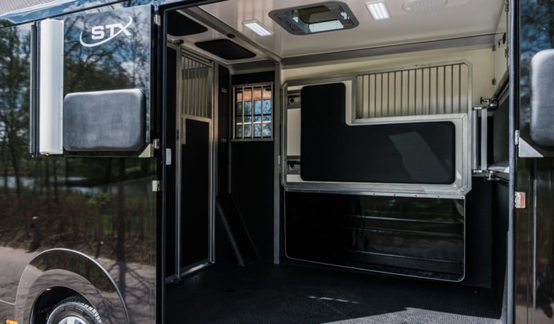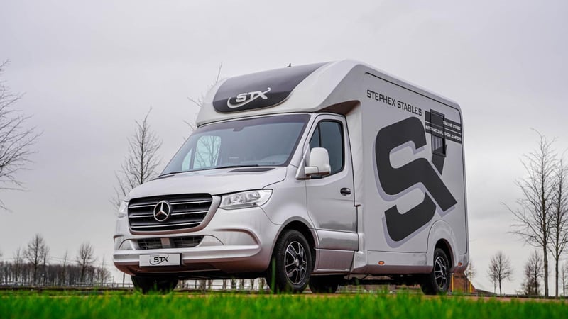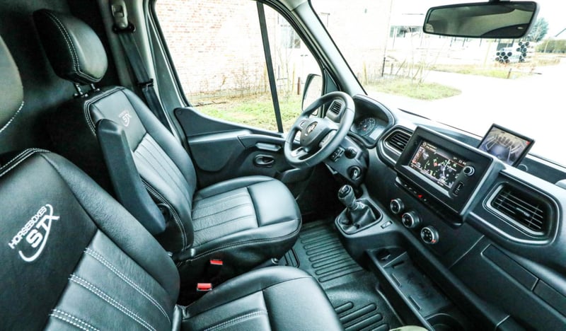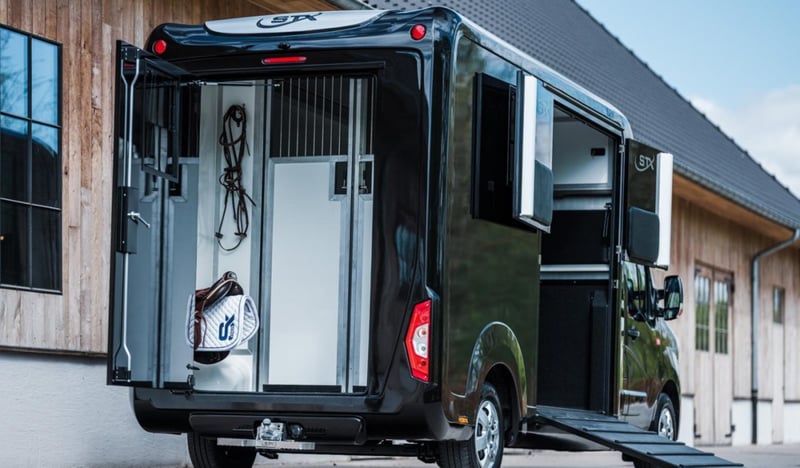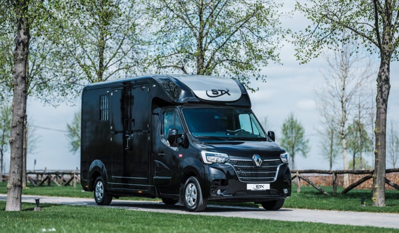 Multiple versions available! Contact us for more information Plusieurs exécutions disponibles ! Contactez nous pour plus d'informations Multiple versions available! Contact us for more information Stallion, Chestbar, Exclusive edition, Renault Master and Opel Movano,... Marque : STX Châssis: Renault / Opel Poids: 3.5T Puissance (CV): 165 Chevaux: 2 Dimensions: 2.1 x 6.2 x 2.8 m Espace Cab Sièges en cuir avec accoudoirs Radio / MP3 / Bluetooth - GPS Vitres et rétroviseurs électriques Verrouillage central Boule d'attelage Climatisation Boîte de vitesses automatique Régulateur de vitesse Feux anti-brouillard Espace Cheval Cloison ajustable Ventilation Fenêtres de toit et fenêtres latérales Eclairage LED bleu/blanc Sellerie avec porte-selles et porte-brides Revêtement de sol en caoutchouc Chaînes de fixation Options Anneaux de fixation chevaux Barre de fixation chevaux Boite automatique Caméras (partie chevaux et recul) Conduite à Droite (RHD) Coussin de protection de tête Intérieur cuir personnalisable Lettrage extérieur Peinture - Toutes couleurs disponibles Sellerie mobile Simple ou Double cabine (3 ou 5 personnes) Placard coulissant Porte-sulky Brand: STX Chassis: Renault / Opel Weight: 3,5T Power (HP): 165 Horses: 2 Dimension: 2.1 x 6.2 x 2.8 m Cabin Area Leather seats with armrests Radio / MP3 / Bluetooth - GPS Electric windows and mirrors Central locking system Trailer hitch Air conditioning Manual gearbox Cruise control Fog lights Horse Area Adjustable partition Electrical air extractor Skylights and lateral windows LED lighting blue/white Tackroom with saddle and bridle holders Rubber flooring Fastening chains Options Single or Double cabin (3 or 5 persons) Automatic gearbox Cameras (horse area and rearview) Mobile tackbox Horse fixing bar Horse fixing rings Head protection pads Sulky holder Customizable leather interior Painting - All colors available Outside stickering Right Hand Drive (RHD) Closeable cupboard Brand: STX Chassis: Renault / Opel Weight: 3.5T Power (HP): 165 Horses: 2 Dimensions: 2.1 x 6.2 x 2.8 m Cabin Leather seats with armrest Radio / MP3 / Bluetooth - GPS Electric windows and mirrors Central locking Trailer hitch Air-conditioning Manual gearbox Cruise Control Fog lights Horse section Adjustable separation Electric air extraction system Skylight and lateral windows LED lights blue/white tack room with saddle and bridle holders Rubber floor Attachment chains Options Single or double cabin (3 or 5 people) Automatic gearbox Cameras (horse area and rear view) Mobile saddle locker Attachment bar for horses Attachment Rings for Horses Pads for head protection Sulky holder Customisable leather interior Painting - all colors available Stickers on the outside Right-hand drive Lockable cabinet