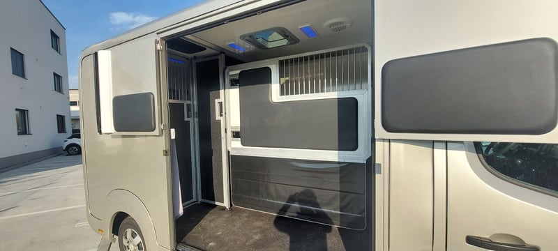 Renault Master 170 PS Euro 6 STX – Pferdetransporter HARAS (1–2 Pferde) – neuwertig Zum Verkauf steht ein sehr gepflegter und nahezu neuwertiger Pferdetransporter auf Basis eines Renault Master mit 170 PS und umfangreicher Hengstausstattung. Fahrzeugdaten: Erstzulassung: 11/2019 Kilometerstand: 33.000 km Leistung: 125 kW / 170 PS Hubraum: 2.299 cm³ Kraftstoff: Diesel Getriebe: Automatik Schadstoffklasse: Euro 6 Umweltplakette: Grün (4) Zulässiges Gesamtgewicht: 3.500 kg Farbe: Gold Metallic Sitzplätze: 3 Ausstattung Fahrerhaus: Lederausstattung Klimaautomatik Navigationssystem (Radio/CD) Bluetooth-Freisprecheinrichtung Tempomat Multifunktionslenkrad Servolenkung Zentralverriegelung Anhängerkupplung (fest, 2.500 kg) Pferdeabteil (HARAS – Hengstausstattung): Softgummiboden Komplette Hengstausstattung mit hoher Trennwand Separate Türen für jedes Pferd Verstellbare Trennwand (ideal z. B. für Stute mit Fohlen) Dachventilator Dachluke LED-Tag-/Nachtbeleuchtung Geschlossene Staukisten im Alkoven Sattel- und Trensenhalter Sattelkammer mit Ablagefächern Kamerasystem (Rückfahrkamera + Pferdeüberwachung) Sonstiges: Fahrzeug befindet sich in einem sehr guten, nahezu neuwertigen Zustand Weitere Bilder gerne auf Anfrage Preis: 49.990 € (Privatverkauf)
