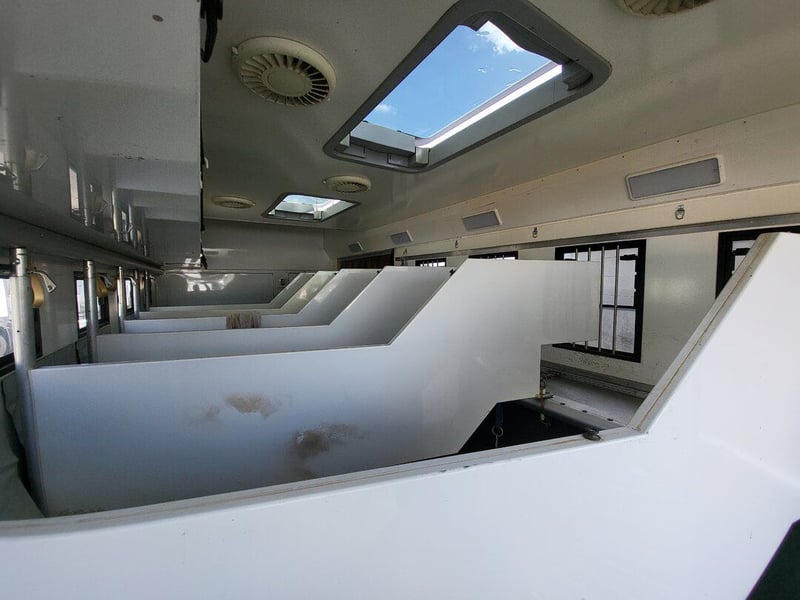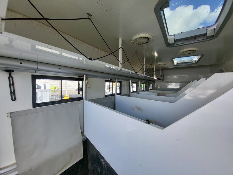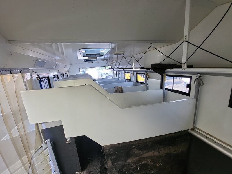 Mercedes-Benz Actros 2551 Horse Truck + Living (2017, Euro 6) with JL International body, only 23,236 km. Layout for 5–6 horses, GigaSpace cab, and 510 hp OM471 engine with 12-speed automatic transmission (6×2, 500 liters). Luxury living area with bathroom, kitchenette (ceramic 2-zone cooktop), mini fridge, sleeping sofa, TV above, household air conditioning, and hot water boiler from Stiebel Eltron; includes PRO ATOR 3500-A winch. Also equipped with climate control, parking air conditioning and heater, adaptive cruise control, lane departure and collision warning, navigation system, and reversing camera. Very clean, ready-to-use horse transport vehicle. Comfort & Safety - Climate control / air conditioning, parking air conditioning, parking heater - Adaptive cruise control, forward collision warning, lane departure warning - Navigation system, radio, reversing camera - LED daytime running lights, halogen and cornering lights, fog lights - Leather upholstery, seat heating, air-sprung driver’s seat - Electrically adjustable mirrors, AdBlue, tow hook coupling Highlights - One bathroom - One washbasin - Storage cabinet with 8 drawers - Ceramic cooktop with 2 zones - Sleeping sofa - Mini fridge - TV on the upper level - Household air conditioning - Shower bath with washbasin - Hot water boiler from Stiebel Eltron