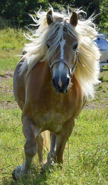 Ausbildung des jungen Pferdes – der Weg vom Züchter zum Verlasspferd: Petra Kronwitter hält beste Kontakte zu den Züchtern und ist mehrmals im Jahr in Vorort, wo sie direkt auf den Weiden die Pferde begutachtet. Diese direkte Zusammenarbeit mit den Züchtern bringt alle positiven Voraussetzungen mit, die ein zukünftiger Pferdebesitzer beim Kauf finden möchte: Drei Eckpfeiler, die ein gutes Pferd ausmachen: 1. Die Züchter kennen über viele Pferdegenerationen die Blutlinien ihrer Pferde und damit verbunden die Eigenschaften, die vererbt werden. 2. Alle Pferde wachsen in einer herrlichen, gesunden Landschaft in einer Herde mit den verschiedenen Altersgruppen auf und erhalten dadurch eine natürliche Sozialisierung. Sie bekommen viel Muskulatur und gute Lungen, wenn sie lernen, sich auf den hügeligen Weiden trittsicher zu bewegen. Wenn sie dann 3-jährig sind, fehlt den jungen Pferden allerdings eine fundierte, korrekte Ausbildung zu verlässlichen Reitpferden. 3. Die übernimmt Petra Kronwitter dann, wenn sie sich vom freundlichen und positiven Charakter der Pferde überzeugt hat. Sie wählt einige aus und holt sie zu sich in ihren Stall in Mainbernheim, wo sie in den nächsten Monaten ausgebildet werden. Petra hat meist schon Anfragen von Kunden und sucht sich die Pferde aus, von denen sie überzeugt ist, dass sie zu den Familien oder Turnierreitern gut passen könnten. So gibt es die sportlichen, die sensibel und leistungsbereit unter dem Reiter sind, genügend Potential in den die Grundgangarten haben, sich geschickt beim Springen anstellen oder mutig im Gelände über Gräben und feste Sprünge gehen. Trotz dieser wunderbaren Rittigkeit sind sie immer klar im Kopf. Diese sensiblen Pferde verlangen nach einem feinfühligen, aber mutigen Reiter, um im Leistungssport oder auf der Jagd ihr Können zu zeigen. Oder es gibt die gutmütigen, gelassenen und braven Pferde, die nach korrekter Ausbildung als Familien- und Freizeitpferd den zukünftigen Besitzern viel Freude machen und den eher vorsichtigen Reitern viel Vertrauen geben. Wenn die Pferde dann entsprechend ausgebildet sind, werden sie oft von Junioren der Reitschule auf Turnieren vorgestellt oder gehen bei Reitjagden mit, so dass die Interessenten wissen, dass das Pferd im Sport erprobt ist, sich verladen lässt und durch seinen guten Charakter ruhig, aber leistungsbereit alles mitmacht.