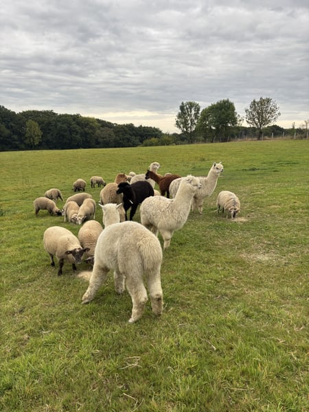 7 Brave Alpakas 2 Stuten Tragen möglich ohne Garantie und 5 Wallache im Alter zwischen ca. 3 Jahre und 9 Jahre Robust gehalten kennen sonst alle weide Tiere . Preis bei Gesammt Abnahme 3600€ zum Ausuchen Sprechen .