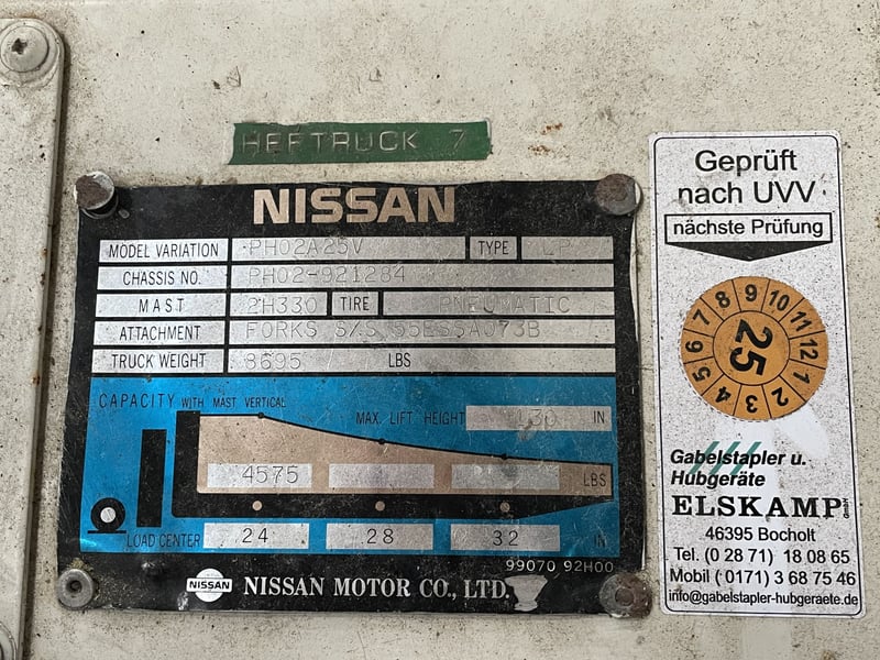 Montacargas de gas Nissan, capacidad de 2,5 toneladas