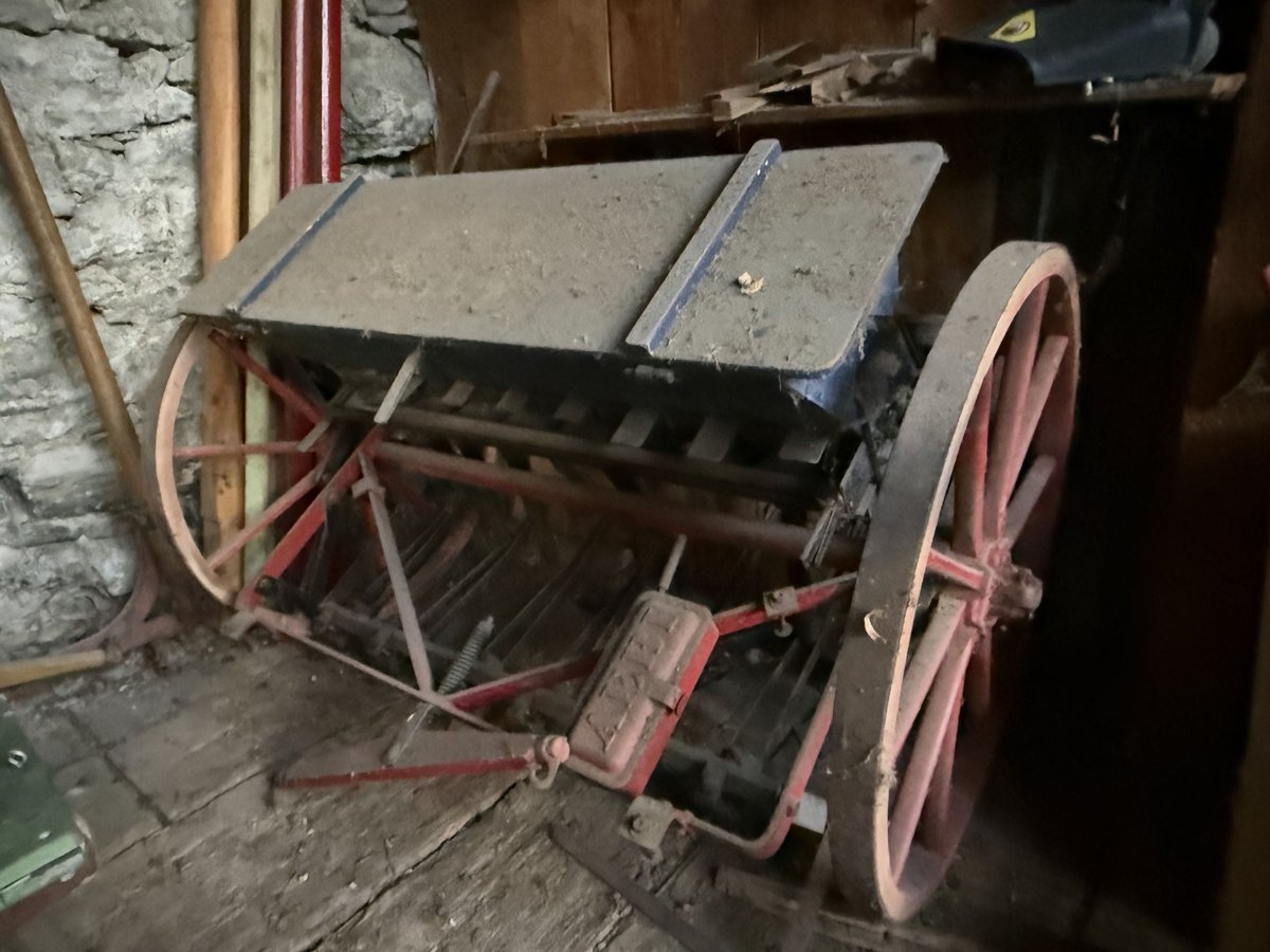 Sehr gut erhaltene Sähmaschine für Pferdezug. Die Maschine steht in Malans GR