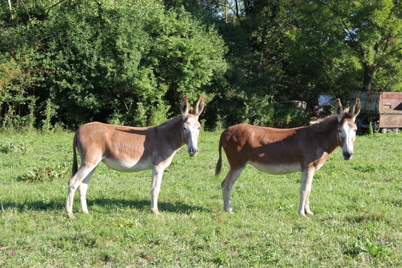 Aufgrund der Verkleinerung meines Tierbestands biete ich die beiden auf dem Foto abgebildeten Esel zum Verkauf an: Mutter (9 Jahre) und Tochter (2 Jahre). Beide sind kräftig, gesund und gutmütig. Ihre Fellfarbe ist äußerst selten: rot. Herkunftsnachweis und Pferdepass sind vorhanden.