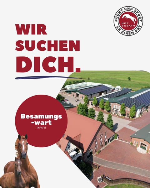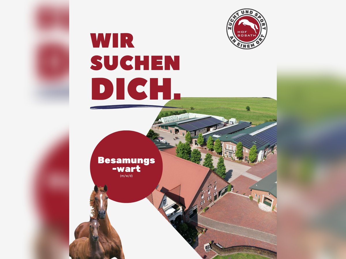 Unser Team wächst – und dafür suchen wir zum nächstmöglichen Zeitpunkt engagierte Unterstützung: 1️⃣ Besamungswart/in (m/w/d) Für unsere Hengststation mit 20 Hengsten und rund 50 eigenen Zuchtstuten suchen wir eine/n qualifizierte/n Besamungswart/in zur Unterstützung unseres Zucht- und Stationsbetriebs. 2️⃣ Bereiter/in (m/w/d) Für unseren Turnier- und Ausbildungsstall suchen wir eine/n talentierte/n Bereiter/in mit viel Gefühl für junge Pferde. Zu den Aufgaben gehören die Ausbildung und Vorstellung von Youngstern in Springpferdeprüfungen und Qualifikationen zum Bundeschampionat sowie der Turniereinsatz erfahrener Pferde bis zur Klasse S. Das bieten wir: ✅ große, etablierte Hengststation bei Bremen ✅ Wohnung direkt am Hof ✅ Vollverpflegung ✅ junges, motiviertes Team ✅ professionelles Arbeitsumfeld mit hochwertigen Pferden Interesse geweckt? ➡️ Dann freuen wir uns auf deine Bewerbung ausschließlich per E-Mail an 📩 post@sosath.com 📞 Für Rückfragen stehen wir gern zur Verfügung: 0175-1666279 oder 0171-7268989 Standort: 27809 Lemwerder www.sosath.com