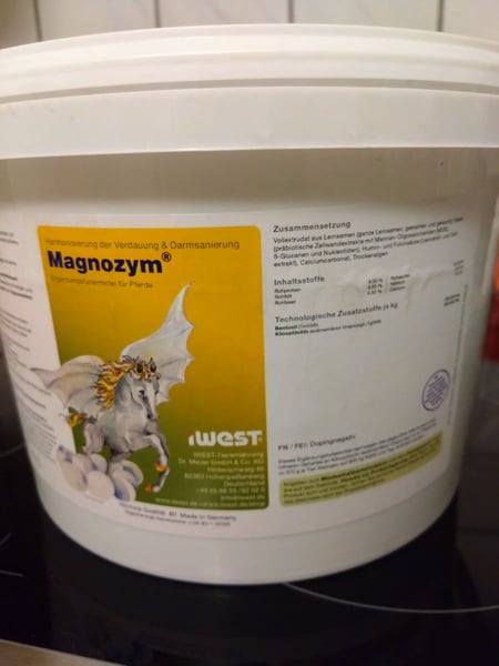 Verkaufe einen 3 kg Eimer iwest Magnozym. Der Eimer ist geöffnet und es sind noch 2,6 kg Futter enthalten. Da mein Pony leider gegen einen Bestandteil des Futters allergisch ist, kann ich es leider nicht weiter füttern. Versand möglich! zzgl. 6,95 € Porto
