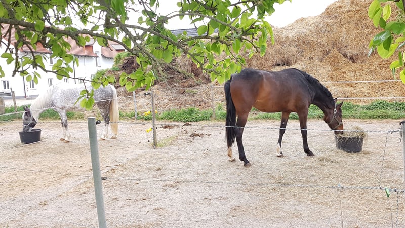 Wir haben in unserem kleinen familiären Stall 1 große Innenbox frei. Die Boxen sind 4x4m mit breiter Stallgasse 4m, so dass auch große Pferde genügend Platz zum liegen haben. Wir füttern 3-4xtgl. Kraftfutter und Heu, gegen Aufpreis 24/7 Heu möglich. Wir bieten je nach Wetter/Boden/Insektenaufkommen täglich Koppel bzw. Auslauf bis zu 8 Std. auf befestigten Paddocks (hier Wasserwanne & Heu). Der Koppelgang erfolgt einzeln bzw. in kleinen Gruppen, die Pferde werden auf die Koppel geführt. Auf den Paddocks stehen sie einzeln oder zu zweit. Eine große Freilaufführanlage bietet zusätzlich Bewegungsmöglichkeit für die Pferde, ebenso unserer großer Reitplatz 20x60m mit Flutlicht und unsere Reithalle 18x41m. Longieren und Laufen lassen ist erlaubt, danach muss der Boden wieder gerecht werden. Hunde sind willkommen wenn sie verträglich sind und unsere Katzen nicht essen mögen. Jedem Einsteller steht möglichst ein Schrank für Sattel und Zubehör zu. Ein Reiterstüberl und Toilette sowie ein kostenloser Hängerstellplatz steht auch zur Verfügung . Wir misten 1xtägl. Montag bis Freitag, Samstag und Sonn- und Feiertags sollte selber gemistet werden, gegen Aufpreis kann auch dies übernommen werden. Wir haben Pferde jeden Alters auf unserer Anlage, Reitunterricht und Beritt ist möglich, es gibt auch eine Spaziergehgruppe . Medikamentengabe und Fliegenmasken aufsetzen/ausziehen ist im Pensionspreis enthalten. Falls wir Dein Interesse geweckt haben freuen wir uns auf einen Besuch in unserem Stall.