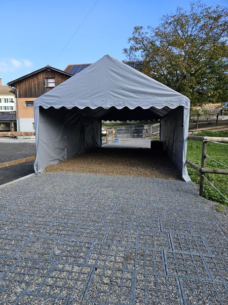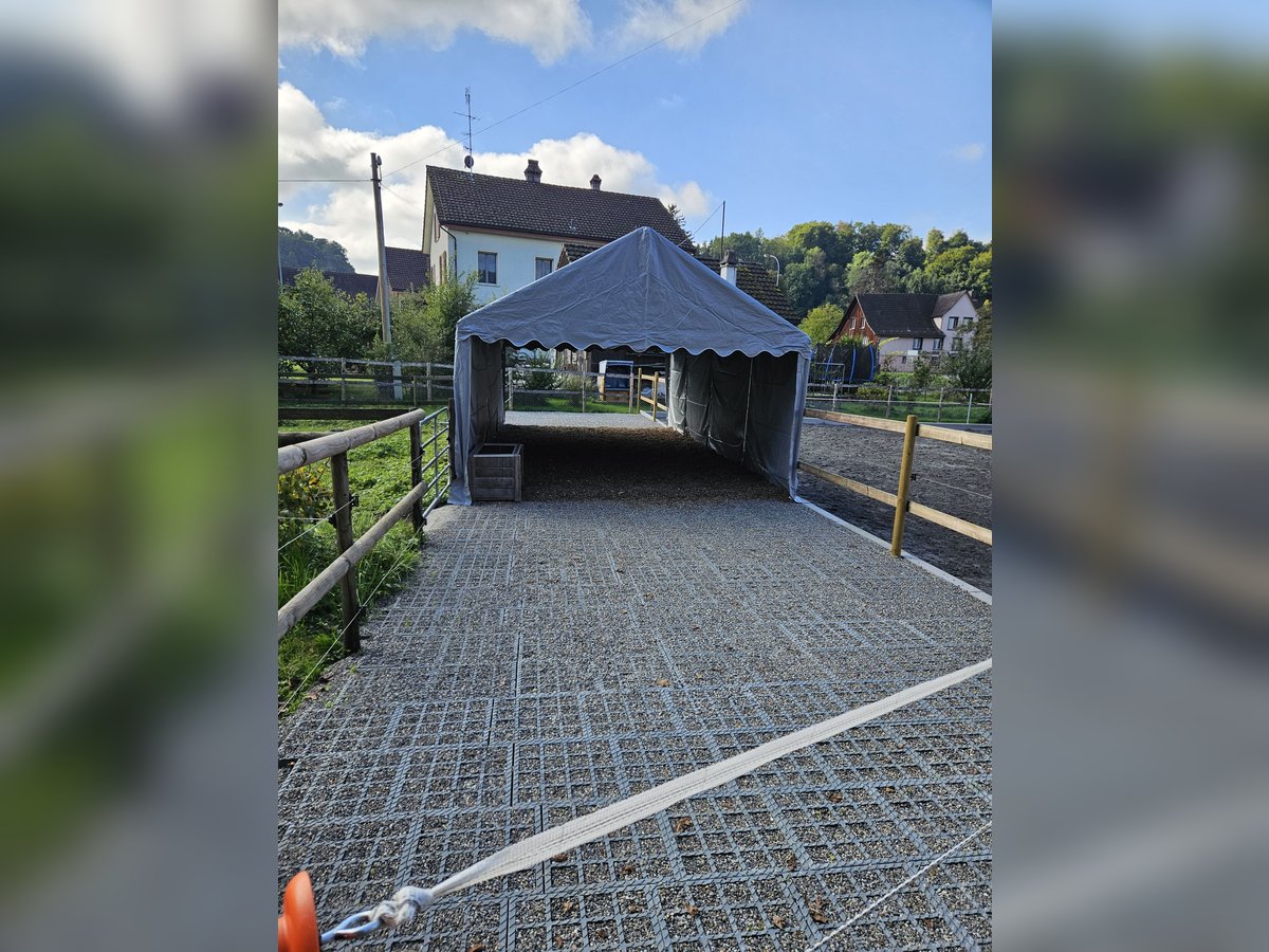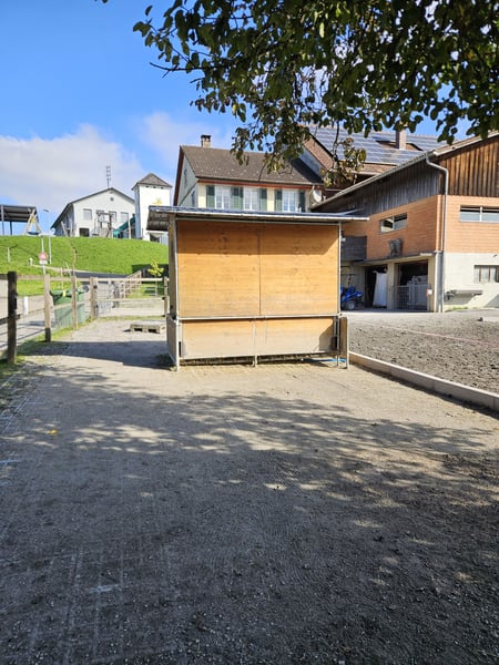 In unserem Familiär geführten Stall wird ab Dezember 2025 wird bei uns eine grosse Auslaufboxe frei. Ideal für 1 bis gut verträgliche Pferde. Befestigte Fläche ca. 240m2 davon Stallfläche (im Weidezelt) 32m2. Boxe kann wenn gewünscht über die Nacht halbiert werden. (2x Boxe mit Auslauf) Eingestreut ist mit Waldboden. Zeitgesteuerte Fütterung 7x täglich über 24h verteilt. 5x täglich Misten. Weidegang separat oder in Offenstallgruppe möglich. Sandplatz und Arbeitsmaterial darf benutzt werden 20x21m. Reithalle steht gegen Aufpreis in 15-20min. Reitdistanz über Feldwege zu Verfügung. Ritterstübli mit WC und Waschmaschine vorhanden. Kosten: Vollpension 1 Pferd mit separater Weide 1100.- pro Monat Vollpension 1 Pferd mit Weidegang in der Offenstallgruppe 1000.- pro Monat Vollpension 2 Pferde mit separater Weide 900.-pro Monat und Pferd Vollpension 2 Pferde mit Weidegang in der Offenstallgruppe 1000.- pro Monat Wir sind ein harmonisches aufgestelltes Stallteam von Jung und Alt. Das wohl der Pferde steht bei uns an erster Stelle. Wünscht Du dir eine gute Betreuung Deines Pferdes und schätzt wie wir Sauberkeit und ein harmonisches miteinander, dann würden wir uns sehr über eine Kontaktaufnahme freuen. Gruss Rebecca Galliker Stall Galliker