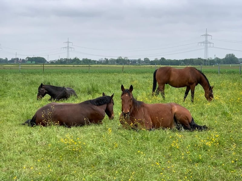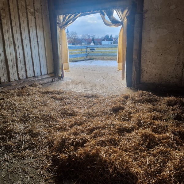 Offenstall: - Wallachherde (max. 5 Pferde) - 50m² Offenstall mit Gummimatten und Stroh - 235 m² befestigtes Paddock - 100m² befestigte Koppel - mehrere gepflegte Grünflächen / Koppeln - mehrere Fresstellen mit zwei Zugängen - Brunnen- und Regenwasser Allgemein: - Kleine Stallgemeinschaft - Reitplatz (Teppichschnipsel) mit Flutlicht - Longierhalle (Sand/Flies) - Führanlage (Teppichschnipsel) - Sattelkammer - Futterkammer - Stellplätze für Pferdeanhänger - Waschplatz - Solarium - Schönes Ausreitgelände