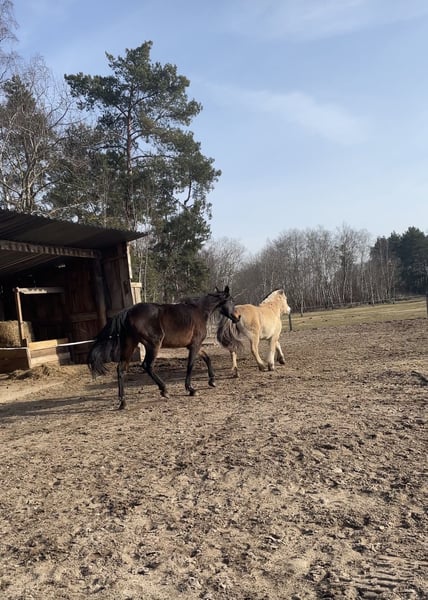 In unserer privaten Offenstallgemeinschaft sind aktuell 2 Plätze für Stuten frei. Insgesamt ist der Offenstall für maximal 4 Pferde ausgelegt, aktuell stehen bereits 2 Stuten bei uns. Wenn ihr einen ganz lieben Wallach habt, können wir gerne reden und schauen, ob es passt. Dann müssten es aber 2 Wallache sein. Der Stall bietet einen großen Unterstand mit Heuraufe. Im Sommer steht zusätzlich Wiese zur Verfügung. Ein klassischer Reitplatz ist nicht vorhanden, jedoch trenne ich zum Arbeiten immer eine Fläche ab, die nach der Arbeit wieder für alle Pferde zugänglich ist. Schönes Ausreitgelände ist direkt vorhanden. Eine sattelkammer und ein Putzplatz sind auch vorhanden. Die Haltung ist gemeinschaftlich organisiert (Selbstversorgung). Eine Beteiligung am Misten (2× pro Woche) ist erforderlich. Zeitaufwand hierfür sind ca 15 Minuten. Die Pferde haben eine Selbsttränke, die in allen Jahreszeiten frisches und ausreichend Wasser bietet. Im Winter ist diese Tränke beheizt, sodass das Wasser nicht zufriert. Der monatliche Unkostenbeitrag beträgt 150 €. Der Stall liegt ländlich, ein Auto ist zur Erreichbarkeit notwendig. Gesucht wird eine ruhige, verträgliche Stute oder 2 ganz liebe Wallache sowie ein zuverlässiger Einsteller, der Freude an gemeinschaftlicher Pferdehaltung hat. Bei Interesse freuen wir uns über eine kurze Nachricht mit Vorstellung ☺️