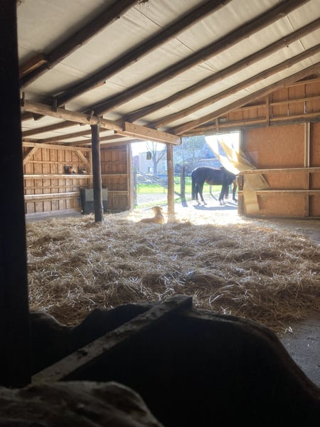 In meinem schönen Offenstall in 31162 OT Hockeln ist ein Platz für ein freundliches, rangniedriges Rentnerpferd frei. Bevorzugt wäre ein Wallach, da dies in der Vergangenheit immer gut geklappt hat. Aber auch eine entspannte /rangniedrige Stute wäre denkbar. Es steht bereits eine liebe Stute in Rente dort, die wieder Gesellschaft sucht, da leider ihr Freund kürzlich verstarb. Ich kann eine liebevolle rundum-Versorgung anbieten- du solltest aber bereit sein, weiterhin die Kosten für dein Pferd zu tragen. Natürlich würde ich mich aber auch sehr über Mithilfe freuen. Den Pferden steht 24/7 Heu zur Verfügung, eingestreut wird mit Stroh. Es gibt eine beheizte Selbsttränke, aber auch Wasser aus dem Bottich. Ein trockenes Futterlager und Platz für Zubehör etc. Im Sommer stehen die Pferde 24/7 auf der Weide mit Heu bei Bedarf. Die Weide ist teils hanglagig, aber mit gerade Flächen und einer großen Hütte mit zwei Eingängen. Wenn du dich angesprochen fühlst, melde dich gerne!