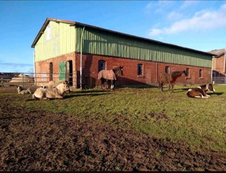 Moin, wir bieten zum nächst möglichen Zeitpunkt mehrere Plätze für Wallache in unserem Offenstall, in 24357 Hummelfeld, an. Wir haben einen kleinen familiären Stall. Im Sommer sind die Pferde 24/7 auf der Weide mit freiem Zugang in den massiven Offenstall und im Winter haben sie 24/7 den Offenstall und ein Stück Wiese zur Verfügung. Die Zufütterung von Heulage oder Heu erfolgt als "All-you-can-eat", rund-um-die-Uhr, ohne die Zufütterung von Stroh, mit Heulage oder Heu von der eigenen Wiese. Der Offenstall hat einen Liegebereich, der mit Waldboden eingestreut ist. Das Füttern mit Heulage/Heu und Wasser erfolgt durch uns. Kraftfutter füttert jede/r seinem Pferd selbst. Abäppeln ist 1x pro Woche/Pferd. Als Reitmöglichkeit steht ein beleuchteter Bewegungsplatz zur Verfügung (20x40m). Dieser ist ein sandiges Stück Wiese das etwas höher gelegen ist und dadurch auch nach Regen schnell trocken ist. Der Bewegungsplatz ist eingezäunt, sodass die anderen Pferde nicht beim reiten stören. Als Alternative steht eine schöne Ausreitumgebung zur Verfügung. Es gibt einen überdachten und windgeschützten Putzplatz in einem Stallgebäude, wo auch die Sattelkammer ist. Ein Schrank kann untergestellt werden. Waschplatz für die Pferde vorhanden. Auf der Koppel laufen ein paar Schafe zur Koppelpflege mit, dies sollte Dich und Dein Pferd nicht stören. Die Schafe kennen Pferde und Menschen, sind gut verträglich und handzahm. Schreibt uns gerne, am liebsten über WhatsApp, oder ruft uns an und wir verabreden einen Termin vor Ort. Unter: 0157/52069508. Kosten: 210€/Monat Wir freuen uns auf Deine Anfrage! Liebe Grüße Jenny und Torge