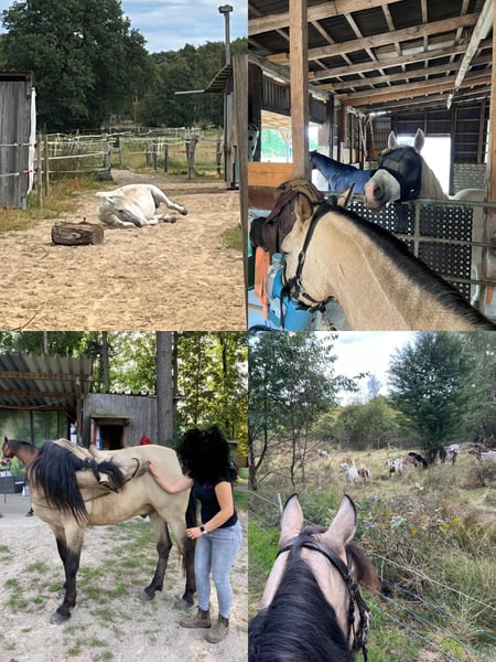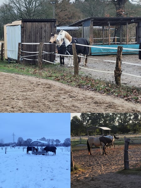 Hallo liebe Besitzer*innen von Wallachen mit und ohne Atemwegsproblemen, in unserem privaten Offenstall ist ein Platz für ein freundliches Hafermoped bis 1,60 m frei. Wir stehen auf einem Hof mit 13 autarken Offenstallkonzepten. Unsere Gruppe besteht aus maximal 4 Wallachen. Derzeit stehen da zwei spanische Jungs (11 und 23 J.), die sich über spielfreudigen Herdenzuwachs freuen würden. ***Fütterung*** Wir füttern bedampftes Heu (ca. 10 kg pro Pferd) aus einer automatischen Heuraufe mit Netz. Wasser gibt es aus einer frostsicheren Selbsttränke. Winter: Fresszeiten von insgesamt ca. 10 - 12 Stunden über Tag/Nacht verteilt mit max. 4 Stunden Pause. Sommer: bis zu 10 Stunden Weide tagsüber und nachts ~5 kg Heu pro Pferd. Sie gehen über ein automatisches Weidetor raus und haben jederzeit Zugang zum Paddock und Unterstand. ***Mitarbeit*** Wir sind ein Selbstversorgerstall, d.h. wir müssen Reparaturen und andere anfallende Arbeiten selbst erledigen. Der Unkostenbeitrag umfasst Platz, Heu (10 bzw. 5 kg) und Instandhaltung. Bei 4 Pferden fallen 2 Stalldienste pro Woche an, d.h. Paddock/Weide absammeln, Heu vorbereiten, fegen. Wir haben kurze Wege, das Heu muss nicht weit getragen werden. Der Stalldienst kann eventuell abgetreten werden. ***Ausstattung*** - beleuchteter Reitplatz - Bodenarbeitsplatz - Longierzirkel, - Strom, Licht, WC - Hunde können mitgebracht werden - keine Stall-Öffnungszeiten - eigene*r Reitlehrer*in kann mitgebracht werden - den wunderschönen Klövensteen erreicht man in 15 Minuten Falls es dich anspricht und es zu den Bedürfnissen deines Pferdes passt, melde dich!