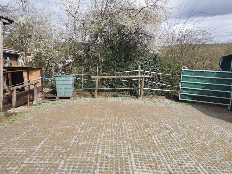 Wir haben noch zwei Plätze in einem Offenstall in Eltville für Selbstversorger frei. Es gibt einen matscharmen, mit Paddockplatten ausgelegten Offenstall mit - einer mobilen Box und einem großen und einem kleinen Weidezelt, - mehreren IBC-Tanks und Tränken, - zwei Wassertanks und zwei Tränken, die im Winter beheizt werden können, - zwei abschließbaren Sattel- und Futterkammern und - zwei Heuraufen mit Heunetzen. - Im Winter bekommen die Pferde 24/7 qualitativ-gutes Bio Heu. - Wir haben eine Photovoltaik Anlage zur Rundumbeleuchtung des Stalles, die mit regelmäßig aufgeladener Batterie super funktioniert. - Die Pferde und der Stall werden von uns mit Kamera videoüberwacht. Im Sommer stehen die Pferde Tag und Nacht auf den Weiden mit Unterstellmöglichkeiten/Baumbestand, die ca 5 Minuten zu Fuß von dem Paddock entfernt sind. (Die Fotos sind teilweise etwas veraltet; unsere Weiden sind aus Sicherheitsgründen mit einem Holzzaun eingezäunt.) Es ist ein viereckiger, ebener Platz aus Erde vorhanden, der ca 20m×30m groß ist. Dieser ist leider natürlich nur wetterabhängig nutzbar. Für Wasserlieferung und Mistentsorgung wird gesorgt. Deine Aufgaben als Selbstversorger bei uns wären: - den Anteil für dein Pferd misten, - zusammen mit uns auf das Wasser achten und verteilen, - (während der Wintermonate und ggf im Sommer, je nach Graswachstum,) alle paar Tage gemeinsam mit uns einen Heuballen in die Raufen schieben, - Putzplatz, Sattelkammer, etc selbstverständlich sauber halten und - bei gemeinschaftlichen Arbeitseinsätzen als Stallgemeinschaft helfen. Wunderschöne Ausreitmöglichkeiten sowohl in die Weinberge direkt ab dem Stall und in den nahegelegenen Wald als auch an den Rhein. Der Stall ist sehr gut mit den öffentlichen Verkehrsmitteln zu erreichen, dieser befindet sich am Rande von 65343 Eltville am Rhein. Die Pferde dort sind 75cm bis 1,58m groß, 3 bis 13 Jahre alt und es ist eine Herde, die andere Pferde schnell akzeptiert. Wir sind eine kleine Stallgemeinschaft und wünschen uns ein freundliches und hilfsbereites Miteinander. Die Wallache müssen herdenverträglich und hinten unbeschlagen sein. Bitte keine Kaltblüter oder schwere Warmblüter und keine Stuten! Pro Selbstversorger-Platz nehmen wir mtl. 250€ plus i.d.R. 50€ pro Pferd für Heu (1 Ballen pro Monat). Dazu kommen 30€ für die Beteiligung an Benzingeld/ Wasserbe- und Mistentsorgung. - Außer, du hast ein Auto mit Anhängerkupplung und kannst regelmäßig dich an der Mistentsorgung beteiligen und bringst dir deinen Wasseranteil selber mit. Bei Fragen und Interesse gerne melden.