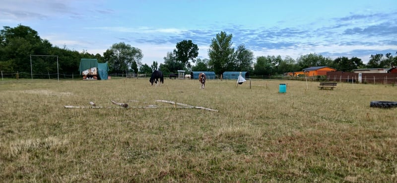Biete von O bis O eine 1ha große Trailanlage mit 2 Weidezelten, 2 Heuraufen 24/7, Sandplatz 20x20m, kleinen Wasserhindernis, Spielplatz und Reitplatz mit Naturboden. Im Winter Offenstall mit Thermobar und täglich Koppelgang. Als Stallgemeinschaft solltest du aber bereit sein, 2x/Woche einen Stalldienst *ca 1h* zu übernehmen.