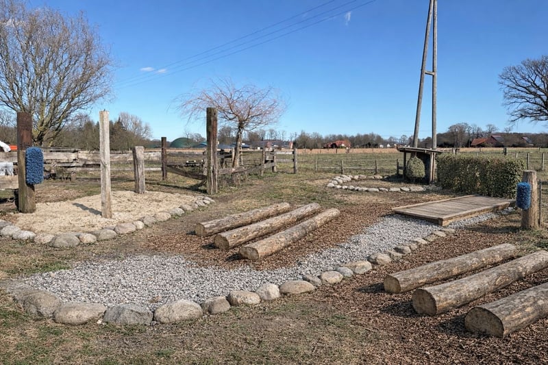 • Hindernisse im paddock (Stämme, verschiedene Böden, Treppen…)