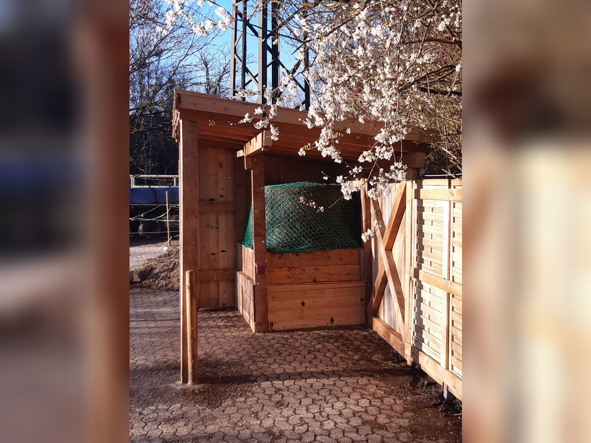 Offenstallabteil zur Haltung in Eigenregie für vier Pferde ab Mitte/Ende August frei! Wir sind ein kleiner Freizeitstall mit einem kleinen Boxenstall und zwei Offenställen, die in mehrere Abteile unterteilt sind. Die Versorgung wie Füttern und Misten organisiert sich jedes Abteil selbst - das Heu bekommen wir vom Bauern, der auch den Mist entsorgt und die Wassertanks befüllt. Einen Wasser-/Stromanschluss gibt es nur am Boxenstall. Ab Mitte/Ende August ist folgendes Abteil zu vermieten (220,- je Grosspferd/200,- je Pony): - unterer Offenstall - grosse, portionierbare Sommer-/Winterweide mit gesandetem Zugang (wurde bisher täglich abgemistet/früher Mischbeweidung mit Rindern) - 35 qm Liegeflaeche (derzeit zur Haelfte mit Waldbodeneinstreu, die von der jetzigen Einstellerin uebernommen werden kann) - ca. 200 qm befestigter Paddock (Pflaster/Sand) - Rundballenraufe aus Holz mit Unterstellmoeglichkeit im Paddock (2 Fressplaetze) und weitere Heuraufe aus Holz ueberdacht (weitere 2 Fressplaetze) ebenfalls im Paddock - Rundballenraufe aus Metall auf der Koppel - IBC-Container bzw. Wasserfass Wir haben einen Reitplatz mit Sand-Spaene-Boden (15 x 25 m) und ein ordentliches Ausreitgelaende. Wir sind eine nette Stallgemeinschaft, die sich nach Absprache auch mal gegenseitig hilft, gelegentlich miteinander grillt und sich bemueht die Bedürfnisse verschiedenster Pferde im Selbstversorgerstall zu managen. Bitte am Besten ein SMS schreiben oder anrufen (nachmittags/abends), da ich nur selten am PC bei meinen Mails bin ….. lieben Dank!