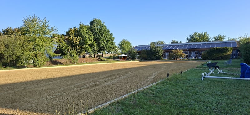 Paddockboxen frei Frankenhof Niederwerrn Am Frankenhof in Niederwerrn sind ab 01.04. 2026 zwei schöne, große Paddockbox frei! Die Boxen werden nur in Vollpension angeboten! Wir sind ein Privatstall mit netter Stallgemeinschaft! Preis/Monat 425,-€ Stroh 450-€ Sägemehl (Ponys & Großpferde gleicher Preis!) • große Boxen mit Paddock • täglicher Weidegang während der Saison (ca. Mai - Oktober) (Koppelservice möglich) bzw. Paddock ganzjährig • größere, zusätzliche Koppeln stundenweise, ca. 200m Entfernung (Pferde müssen selbst geführt werden!) • Stroh oder Sägemehl nach Wunsch • 3x täglich Kraftfutter (Hafer, Pellets, Mais, auch Medikamente können gegeben werden) • 3x täglich Heu • Reithalle 20x40m (neuer Sand 08/2018) • Reitplatz 20x60m mit Flutlicht • großer, erneuerter Longierzirkel mit neuem Sand 08/2018 • Stangen, Kavalettis & Ständer zur freien Verfügung • wunderschönes Ausreitgelände direkt angrenzend (ohne Straßenverkehr!) • Wurmkurservice falls gewünscht • Reiterstübchen mit Blick in die Halle • Sattelkammer inkl. Schrank • Putzplatz • Waschplatz • WC • neues 2021 gekauftes Laufband • Getränkeautomat (gegen Gebühr) • Solarium (gegen Gebühr) • Futterplatz für eigenes Futter wird gestellt • kein Schulbetrieb! • regelmäßiger Unterricht in Springen & Dressur durch externe Reitlehrer möglich • Vereinsmitgliedschaft zur Turnierteilnahme gegen geringe jährliche Gebühr möglich Bei Interesse besuchen Sie uns gerne oder rufen Sie uns unter unten stehender Telefonnummer an! Wir freuen uns auf Sie! Roland Frank 01573 770 32 35