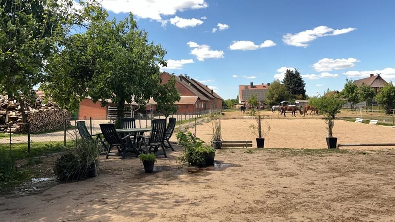 Bei uns steht das Pferdewohl an erster Stelle. Wir haben große Boxen (5x6m) mit anschließendem großen Paddock. 24/7 Heufutterung ist für uns selbstverständlich. Kraftfutter wird Morgens und Abends gegeben. Die Pferde werden nach dem Kraftfutter raus gebracht. Im Sommer auf die Wiesen und im Winter auf trockene Paddocks mit 5-6 Pferden. Wir achten sehr darauf, dass die Herden harmonisch sind und kein Pferd im Stress draußen steht. Außerdem gibt es immer mehrere Futterplätze um Streitereien zu vermeiden. Es gibt eine Reithalle mit gelenkschonendem, staubarmen Vlies in 15x30m ist vorhanden. Der Außenreitplatz ist 20x40m Unser Ausreitgelände ist ohne stark befahrene Straße erreichbar, wunderschön und sehr weitläufig mit Badeseen. Selbstverständlich kann man sein Pferd trocken putzen und fertig machen und die Sattelkammern sind großzügig mit genug Platz. Auch eine Pferdedusche mit warmen Wasser steht auch zur Verfügung. Für Allergiker sehr gut geeignet da die Anlage gut belüftet ist und ein Heubedampfer vorhanden ist. Auch Rehepferde sind bei uns willkommen und werden bedarfsgerecht versorgt. Ausmisten muss jeder selbst wie er es für richtig hält und es gibt abappel Dienste für die Paddocks. Außerdem ist ein Platz in unserem kleinen Offenstall frei. Offenstall 180€ Eine Reitlehrerin mit Erfahrung mit schwierigen Pferden und Angstreitern ist vor Ort. Diese macht gerade eine Weiterbildung in Pferdeosteopathie. Für freuen uns auf Anfragen und ein Kennenlernen.