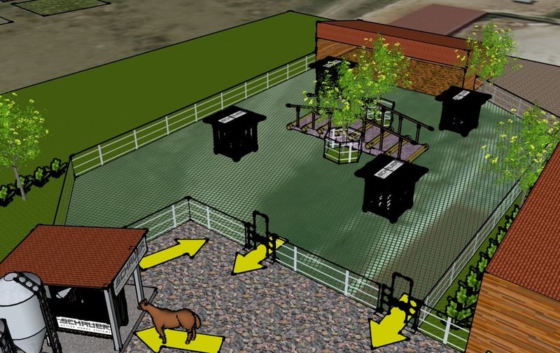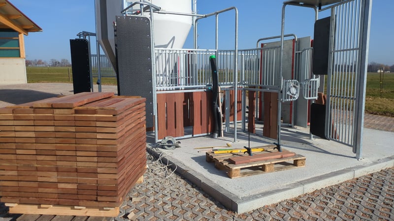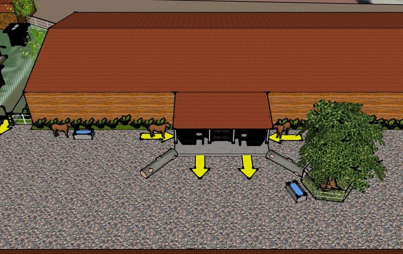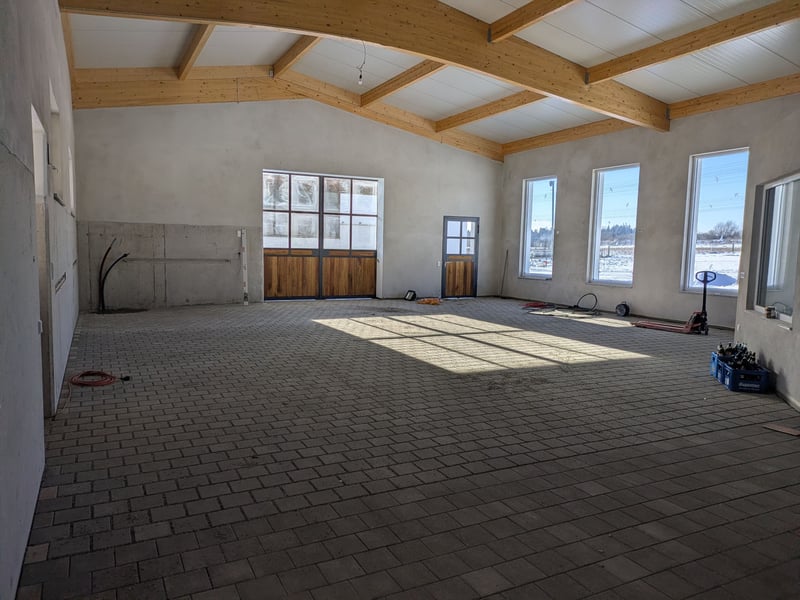 Nueva construcción de establo activo en mayo de 2026 y establos existentes, 2 pistas de doma