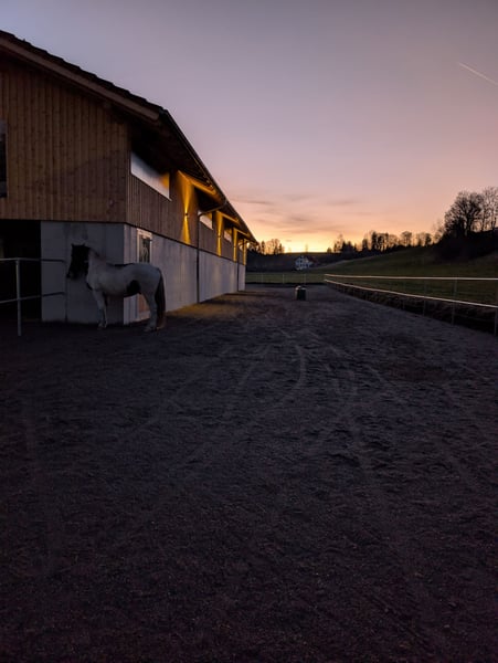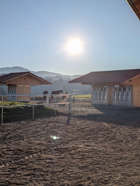 Wir möchten unseren Betrieb hier einmal etwas persönlicher vorstellen, da wir wissen, dass die Wahl eines passenden Stalls oft keine schnelle Entscheidung ist. Wir haben den Pferdehof Ammerblick im Pfaffenwinkel im letzten Jahr neu aufgebaut – mit dem Ziel, einen Ort zu schaffen, an dem Pferde in einer ruhigen Umgebung, mit viel Platz und klaren Strukturen gehalten werden können und sich gleichzeitig auch die Besitzer gut aufgehoben fühlen. Uns war dabei wichtig, nicht nur „einen weiteren Stall“ zu bauen, sondern ein stimmiges Gesamtkonzept: Eine großzügige Aktivstall-Anlage, in der sich die Pferde frei bewegen können, kombiniert mit einer verlässlichen Versorgung und möglichst wenig Aufwand im Alltag für die Einsteller. Unser innovativ gestalteter Aktivstall bietet euch: - Individuelle und bedürfnisorientierte Fütterung für jedes Pferd, durch moderne HIT-Technik. - Kleine Gruppe mit 20 Pferden. Gemischte Herdenhaltung. - 24/7 Bewegungsfreiheit auf über 3200m² Paddockauslauf. Hervorrragend geeignet für Arthrose Pferde und Pferde mit Bänder und Sehenproblemen/- schäden - doppelte Futterplatzanzahl - zu buchbare Erweiterung für eine individuelle Fütterung (Einzelheudosierer) - Sommer- und Winterweide - Qualitativ hochwertiges Heu aus eigenem Anbau, als Futtergrundlage. Regelmäßige Heuanalysen. - Allwetterreitplatz 20x40 mit Beleuchtung und frostbeständigem Belag. - Equipment für Bodenarbeit vorhanden z.B. Podest - Professionelle Betreuung duch fachliche Qualifikation und ständige Weiterbildung. - Zentrale Lage. Busanbindung wenige Gehminuten entfernt. - Naturnahes Ausreitgelände mit der Ammer in naher Reichweite. - Sattelkammer mit eigenem, großzügigem Spind und Sattelhalter - Überdachter Putz- und Waschplatz - Separater, innenliegender Anbindeplatz für ungestörte Behandlungen wie Zahnarzt - Beheiztes Reiterstüberl mit Küche - Entwurmungs Management - Entspannungsmöglichkeiten für den Reiter - Sanitäre Anlagen mit Dusche - Hundefreundlich - Parkplätze Da wir noch freie Plätze haben, wollten wir diesen Beitrag hier einfach mal teilen. Wenn du Lust hast uns und unseren Aktivstall gennen zu lernen, dann frage ganz unverbindlich an. Gerne zeigen wir den Hof in Ruhe vor Ort und beantworten alle Fragen. Wir freuen uns auf deine Anfrage. Dein Pferdehof Ammerblick