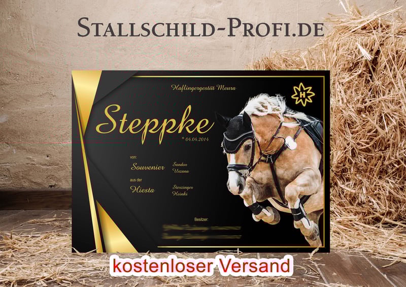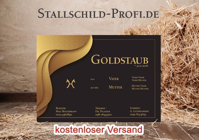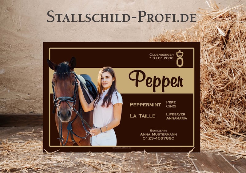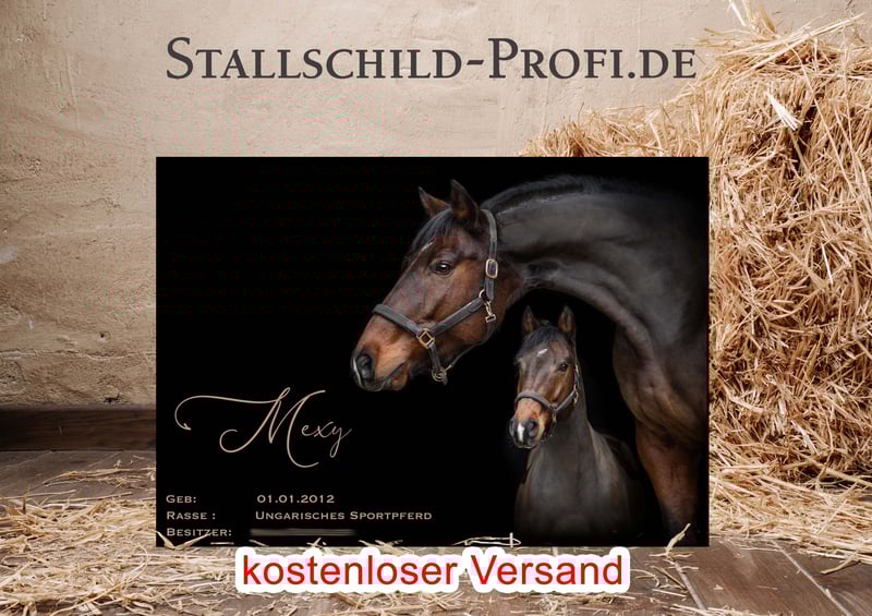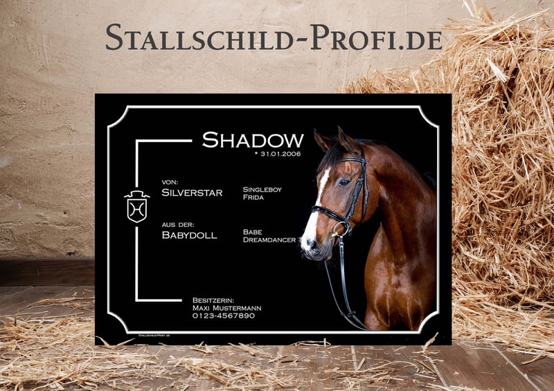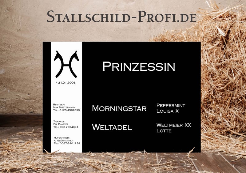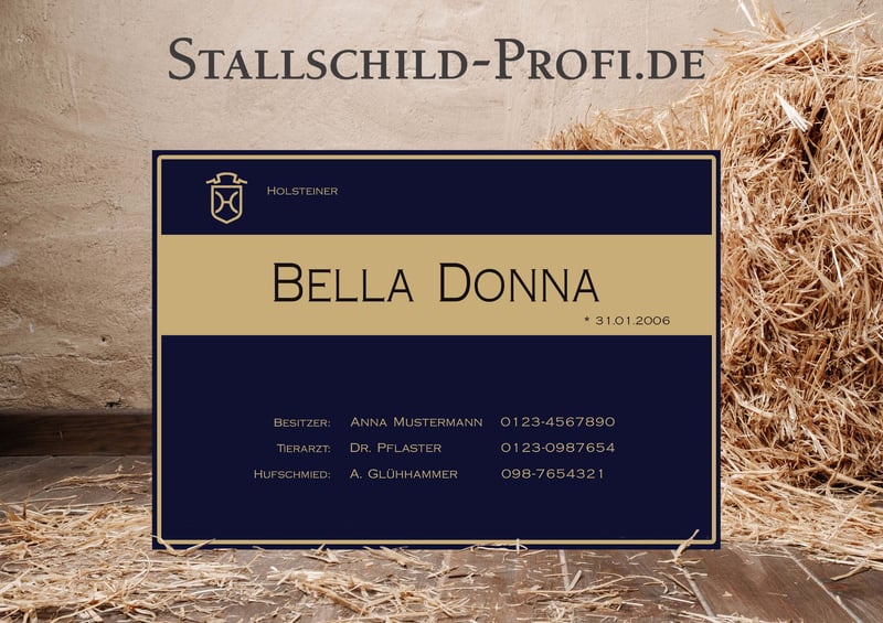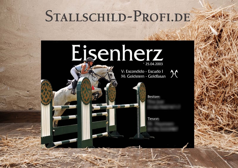 Gib der Pferdebox deines Lieblings eine persönliche Note mit einem individuell gestalteten Boxenschild. Bei Stallschild-Profi.de kannst du dein Schild ganz nach deinen Wünschen erstellen – mit eigenem Foto, Pferdenamen, Geburtsdatum, Abstammung, Stallnamen oder einem persönlichen Spruch. Wähle aus verschiedenen Designs, Schriftarten und hochwertigen Materialien wie Forex-Kunststoff, Hart-PVC, Alu-Dibond oder Acrylglas. So entsteht ein einzigartiges Namensschild für die Pferdebox, das nicht nur dekorativ ist, sondern auch wichtige Informationen über dein Pferd stilvoll präsentiert. Unsere Boxenschilder sind robust, wetterfest und perfekt für Stall, Reitanlage oder Turnierstall geeignet. ✔ Individuell gestaltbar mit Foto und Text ✔ Hochwertige, langlebige Materialien ✔ Verschiedene Größen und Designs ✔ Ideal für Stall, Pferdebox und Reitanlage ✔ Versandkostenfrei innerhalb Deutschlands Gestalte jetzt dein persönliches Boxenschild für dein Pferd ganz einfach online. 👉 www.stallschild-profi.de