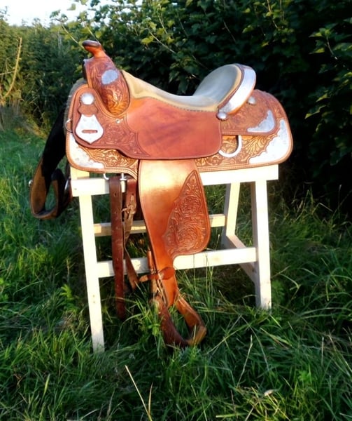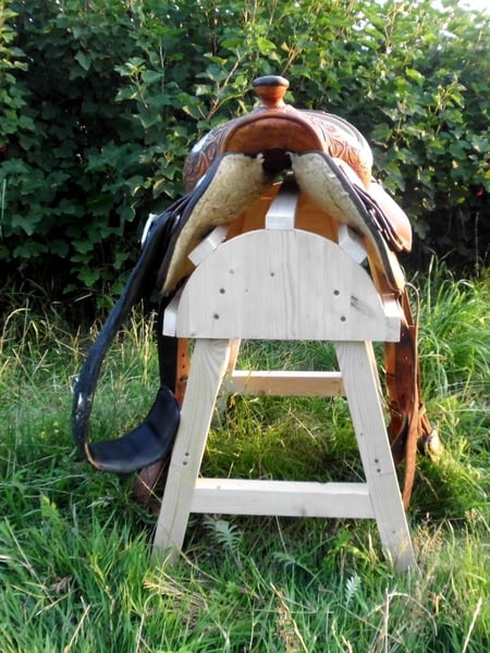 verkaufe meinen Sattelbock, der leider nie genutzt wurde - NEU Er ist aus Fichtenholz und sieht sehr gut aus. Schick in der Sattelkammer oder auch im Zimmer Höhe: 81cm Breite: 42cm (oben) Tiefe/Länge: 66cm Breite: 58cm (unten) Maße können leicht variieren Er ist auch für sehr große Westernsättel geeignet, selbstverständlich auch für alle anderen Sättel. Versandkosten 15€ Kein Paypal oder ähnliches!