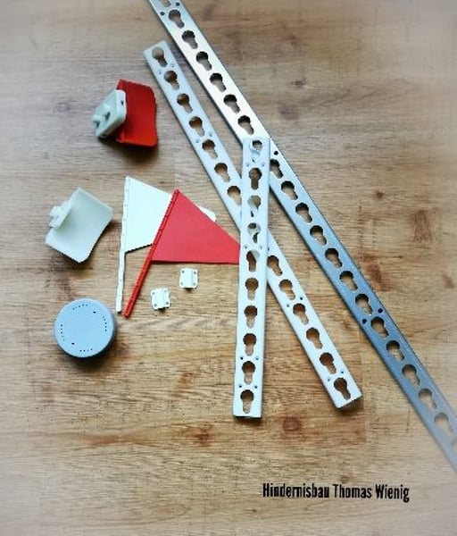 Obstacle flags €2.20 each, available in white or red including holder, price per piece. Shipping abroad may vary. You will also find the following items for equestrian sports in my eBay auctions/classifieds: Keyhole rail made of impact-resistant plastic Length 75 cm or 50 cm Pole caps Safety pads Professional plastic pole pads We also manufacture high-quality obstacles for competition and training purposes. A selection can be found at: Hindernisbau Wienig, Görlsdorfer Dorfstr. 12, 15926 Luckau Tel. 03544-4387, Mobile 0157-73314387.