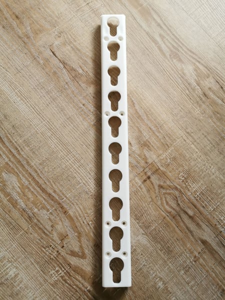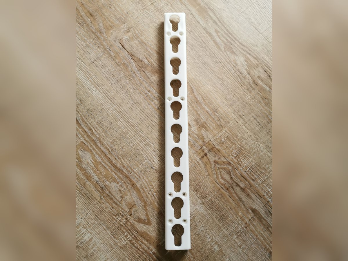 Schlüssellochschiene aus schlagfesten Kunststoff Länge 50 cm Sie finden bei meinen Ebay-Aktionen/Kleinanzeigen auch folgende Artikel für den Reitsport Hindernisfahnen weiss oder rot incl.Fähnchenhalter Stangenkappen Sicherheitsauflagen Vario von Riel Professional Kunststoff-Stangenauflagen Metallschienen 150cm Plastschienen 75cm Ebenfalls stellen wir hochwertige Hindernisse für den Turnier- und Trainingsbetrieb her. Eine Auswahl finden Sie unter : Hindernisbau Wienig, Görlsdorfer Dorfstr. 12, 15926 Luckau Tel. 03544-4387, Mobil 0157-73314387